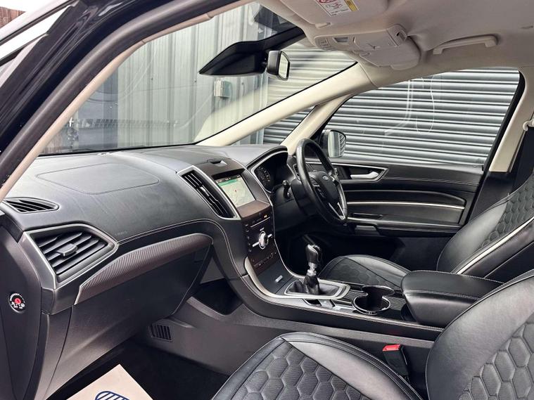 Ford S-Max 2.0 TDCi Vignale MPV 5dr Diesel Manual Euro 6. ULEZ FREE, Finished in Panther black metallic with Ebony honeycomb Vignale leather interior and white contrast stitching with only 1 owner from new and 7 seats. 18'' anthracite alloy wheels, Ford SYNC3, Apple CarPlay/ Android Auto premium Ford DAB, 8'' touchscreen, cruise control with speed limiter, enhanced active park assist, heated seats. heated steering wheel, rear view camera, handsfree electric power tailgate, active park assist with parallel and perpendicular parking, rear air conditioning, detachable towbar, memory door mirrors, one touch windows, power folding door mirrors, quick clear front windscreen with heated washer jets, Bi-Xenon headlights, LED DRL's, dual zone climate control, handsfree tailgate, Vignale Ebony leather wrapped steering wheel, hill start assist.Here at Saracen Motor Group we have been awarded AA Platinum Dealership Recognition along with being nominated for best customer service by Autotrader for 2021, 2022, 2023, 2024 & 2025. We are a 5-star dealership with over 600 5-star reviews across all internet platforms including Autotrader and have been regarded as one of the best dealerships to buy from in the UK.Our preparation team inspects each vehicle to the highest level possible for it’s age and mileage. You can rest assured your next car has been cared for to the highest standard. Service history, V5 and the HPI certificate will all be present on viewing and collection. At our site based in Battlesbridge, Essex you can enjoy a haggle-free buying experience where you can drive away the same day if prior arranged. Additional fee's apply, Please see our website for details..