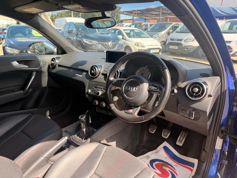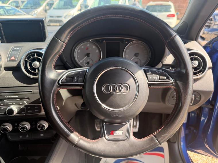 This 2015 hot hatch Audi S1 TFSI boasts a full service history, with its last service completed now at 85, 776 miles, offering peace of mind alongside its impressive performance. This four wheel drive model is powered by a 2.0 litre petrol engine and meets Euro 6 emission standards. Inside, you'll find luxurious Fine Nappa Leather upholstery in Steel Grey with striking red stitching, complemented by Electronic Climate Control for your comfort. The S1 also features Bi Xenon Plus headlights with an automatic on function, and Mobile Telephone Preparation with Audi Connect, including Bluetooth connectivity.The Audi S1 TFSI is designed for an exhilarating driving experience, accelerating from 0 to 62 miles per hour in a swift 5.8 seconds. This rapid acceleration, combined with its four wheel drive system, sets it apart from many other vehicles in its class, providing a dynamic and engaging drive. A 12 month MOT will be provided on purchase, and the vehicle comes with a 3 month warranty, further enhancing its appeal as a well maintained and ready to go performance car..
