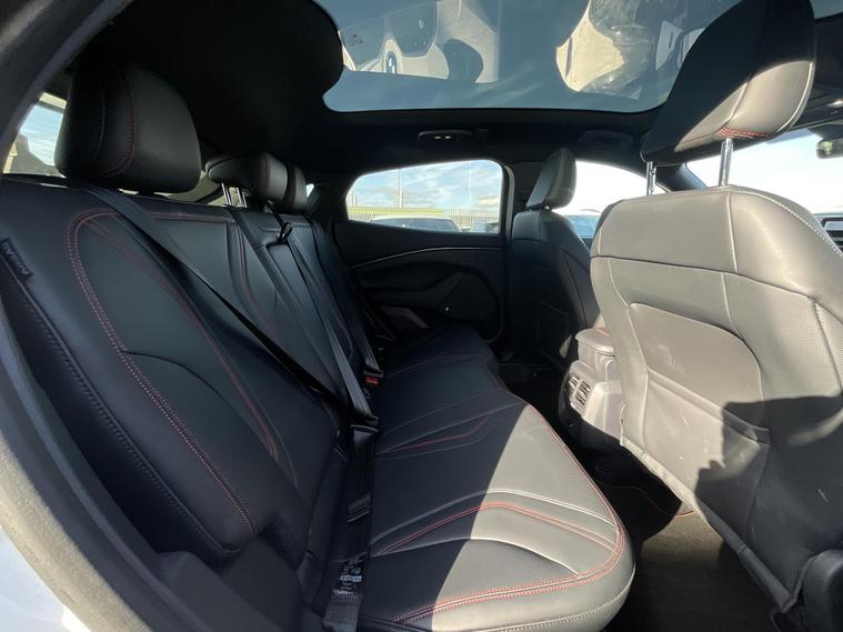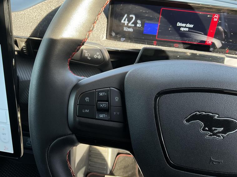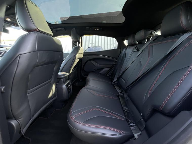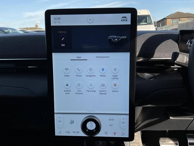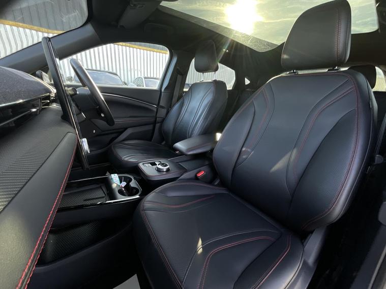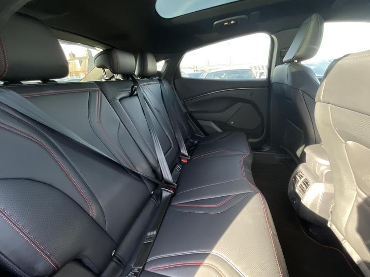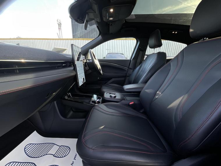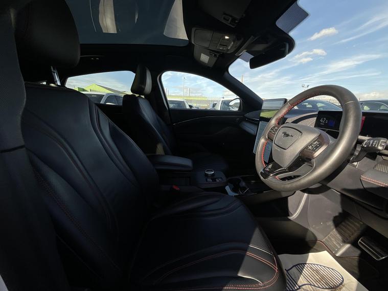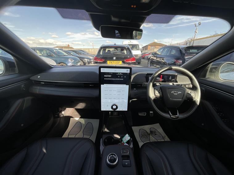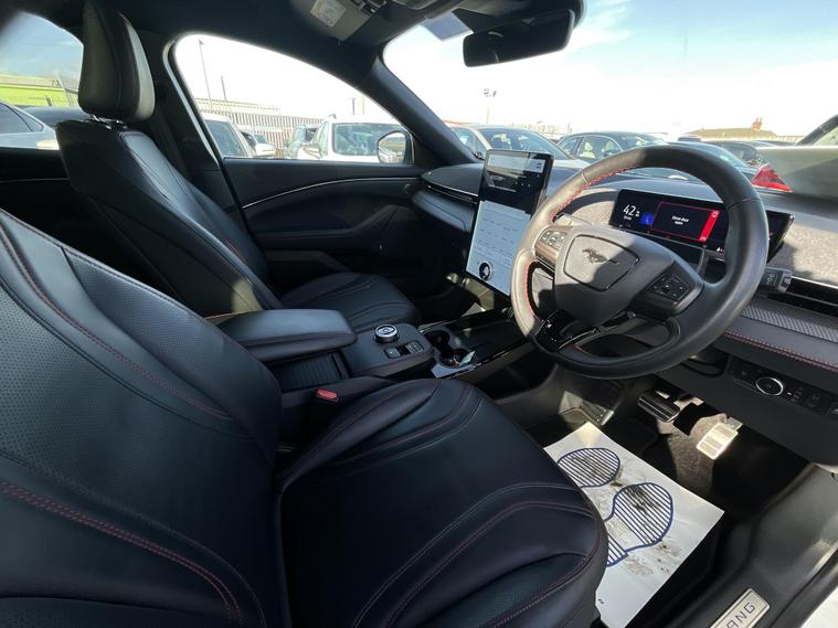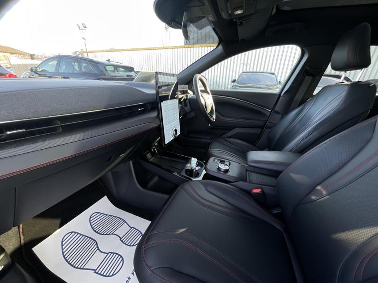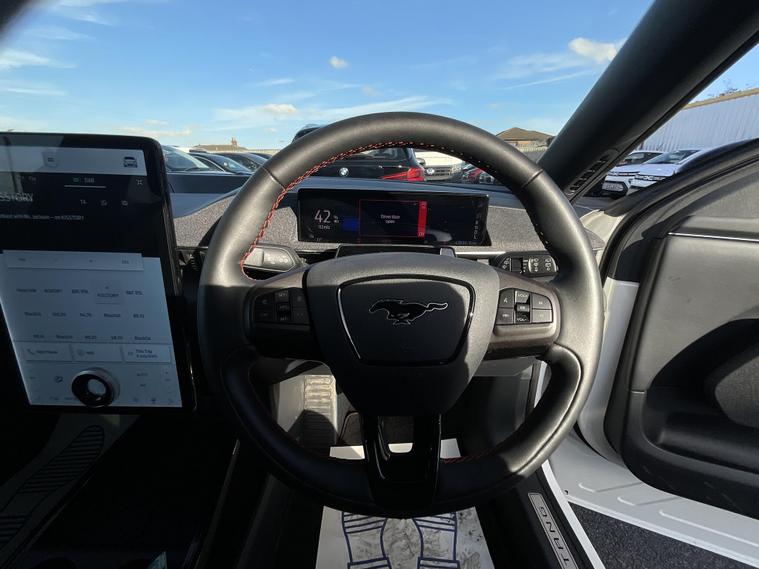 This 2024 Ford Mustang Mach E Extended Range boasts an MOT valid until January 2027, offering peace of mind for the coming years. This electric vehicle features a substantial 99 kWh battery, providing a maximum range of 335 miles when new. Its Four Wheel Drive drivetrain ensures confident handling in various conditions. Charging at home with a 7kW charger takes approximately 14 hours and 36 minutes for a full charge, while rapid public charging can take you from empty to 80% in as little as 51 minutes.Experience impressive performance with this Mustang Mach E, which accelerates from 0 to 62mph in a swift 5.8 seconds. This rapid acceleration, combined with its extensive 335 mile range, sets it apart from many other electric vehicles on the market, offering both exhilarating driving and the freedom to travel further between charges..