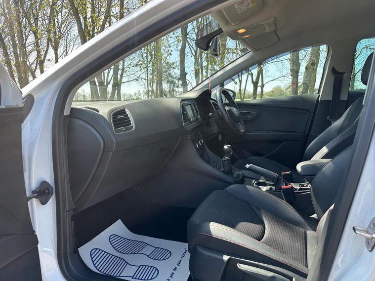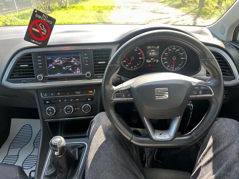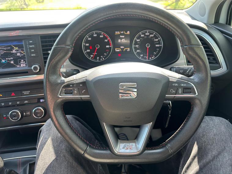 - Steering Wheel - Flat-Bottomed Perforated Leather with Red Stitching and FR Logo