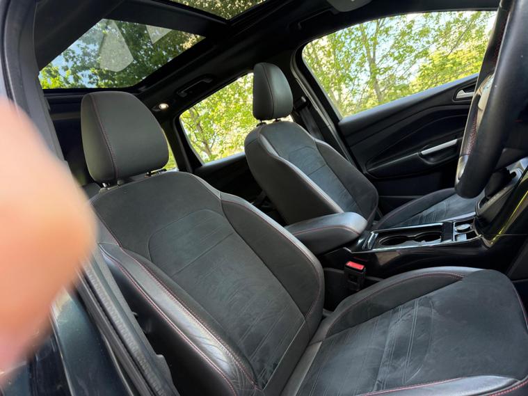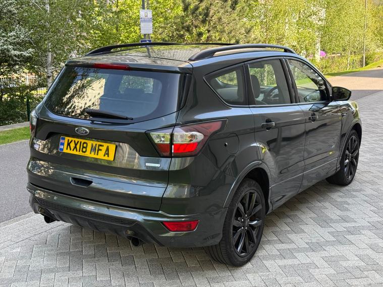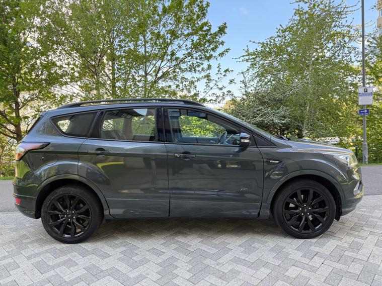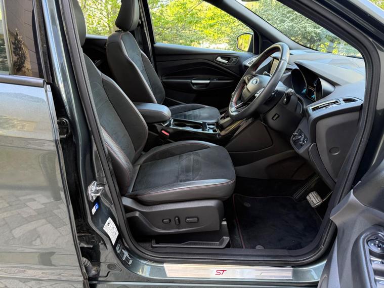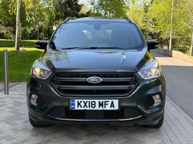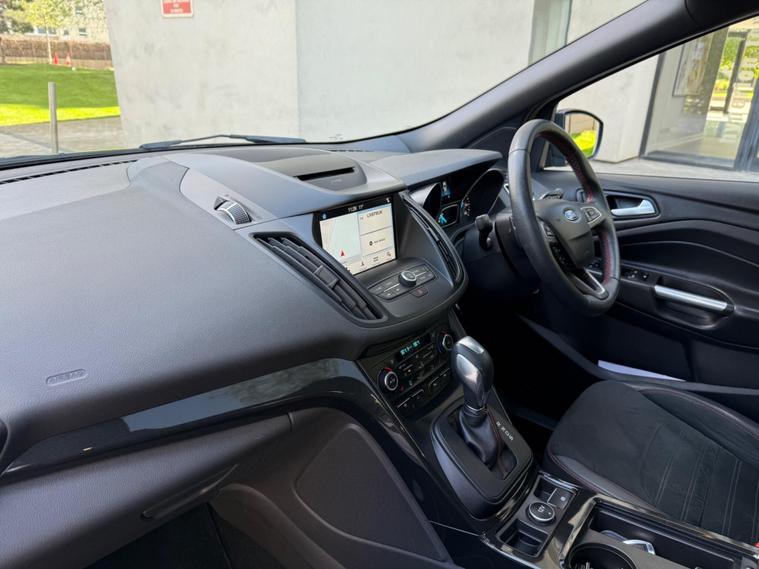 ONE OWNER FROM 2018, WARRANTY MILEAGE, EXCELLENT SERVICE HISTORY, PANORAMIC SUNROOF, HEATED SEATS, PARKING PILOT, SAT NAV, CRUISE CONTROL, PARKING SENSORS, ELECTRIC FOLDING MIRROR, 2 KEYS, POWER BOOT, 6 MONTHS WARRANTY, FINANCE ARRANGED, This 2018 Ford Kuga T ST Line X boasts exceptionally low mileage for its age, having covered just 21, 000 miles. This Euro 6 compliant model features a responsive 1.5 litre petrol engine paired with a capable four wheel drive system, making it a versatile choice. Inside, you'll find comfort and convenience with heated driver and passenger seats, alongside the Ford DAB Navigation System with Ford SYNC3, which includes Bluetooth connectivity. The exterior is enhanced by automatic halogen headlights with distinctive LED daytime running lights, and for added ease, rear parking sensors are fitted.The ST Line X trim level signifies a sportier and more premium offering, and this particular Kuga further elevates its appeal with a power opening panoramic roof, allowing you to enjoy an open and airy cabin experience. These carefully selected features and its remarkably low mileage indicate that this Ford Kuga is a standout option compared to other similar vehicles on the market, offering a well equipped and well maintained driving experience..