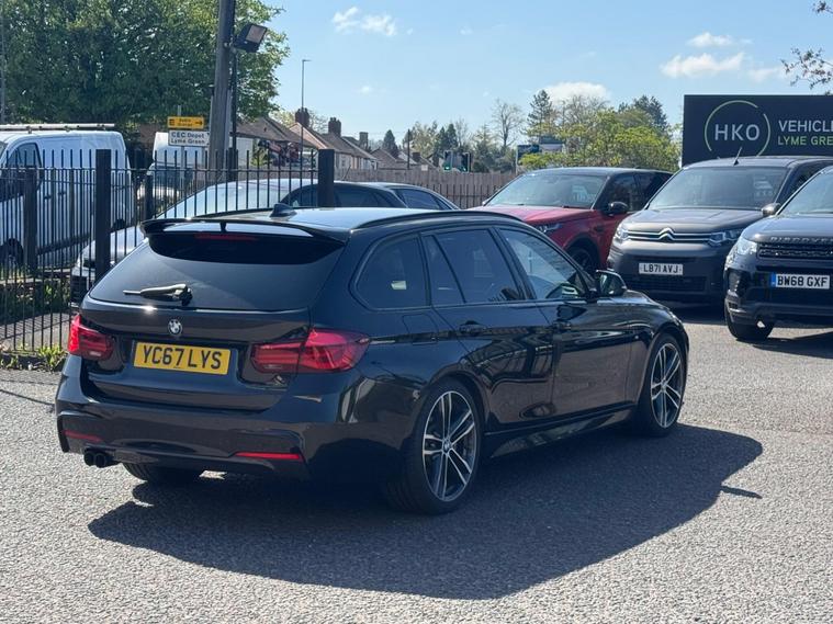 Welcome to HKO Vehicles Lyme Green – we are delighted to offer this stunning 2017 BMW 3 Series 320d M Sport Shadow Edition Touring, finished in sleek black and presented in excellent condition throughout. This is a fantastic example of a premium estate, combining sporty styling, practicality, and outstanding driving performance.This vehicle has covered 86, 700 miles and has had three owners. Powered by the efficient and powerful 2.0 320d diesel engine producing 190ps, paired with the smooth automatic gearbox, it delivers excellent performance, impressive fuel economy, and a refined driving experience. Being Euro 6 compliant, it meets modern emission standards.As the highly desirable M Sport Shadow Edition, this vehicle benefits from enhanced styling and a high level of factory specification, including:* M Sport Shadow Edition styling package* Gloss black exterior accents* 19 inch M Sport alloy wheels* Full black leather interior* Heated front seats* Electrically adjustable seats* Professional satellite navigation* BMW iDrive infotainment system* Digital driver display* Front and rear parking sensors* Dual zone climate control* Cruise control and speed limiter* LED headlights* Keyless start* Electric tailgateThe Touring estate offers excellent practicality with a spacious boot, making it ideal for family use while still delivering the sporty driving experience BMW is known for.This vehicle will be supplied with a 12 Months MOT and includes a 3 Months Warranty for added peace of mind.We are proud to be an AA Approved Dealer, ensuring all vehicles are thoroughly inspected and prepared to the highest standard prior to sale.Finance available – instant decision, competitive rates, and drive away today. Please apply via our website or call us on (01260) 544944 to discuss a tailored finance package.A fantastic opportunity to own a well-presented and high-specification BMW 320d M Sport Shadow Edition Touring Automatic, offering performance, practicality, and premium styling. Contact HKO Vehicles Lyme Green today to arrange a viewing or test dri.