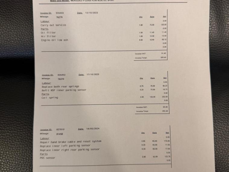 This 2016 Mercedes Benz V Class V250d Sport boasts a full service history, with its last service completed at 93, 813 miles, ensuring excellent provenance. This Euro 6 compliant model features a powerful 2.2L diesel engine and offers seating for seven as an optional extra , making it ideal for families or business use. The Sport trim level includes striking 19 inch alloy wheels in a 5 twin spoke design and elegant dark brown ash wood look interior trim. For your entertainment and convenience, it is equipped with a premium Burmester Surround Sound System and the COMAND Online satellite navigation system.Experience effortless journeys with the V250d Sport's impressive acceleration, reaching 0 to 62mph in just 9.1 seconds. The 360 degree camera system, complete with parking assistance, provides exceptional visibility and aids in manoeuvring. With a substantial towing weight of 2500 kg and generous boot space, this vehicle offers outstanding practicality. A 3 month warranty and 12 months MOT are provided on purchase, giving you peace of mind. These features collectively demonstrate the superior quality and capability of this Mercedes Benz V Class compared to other vehicles in its class..
