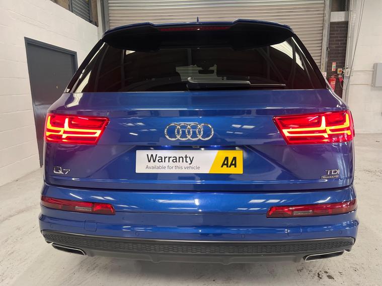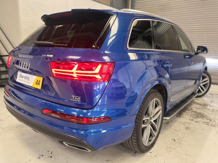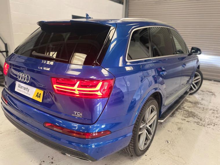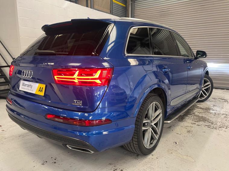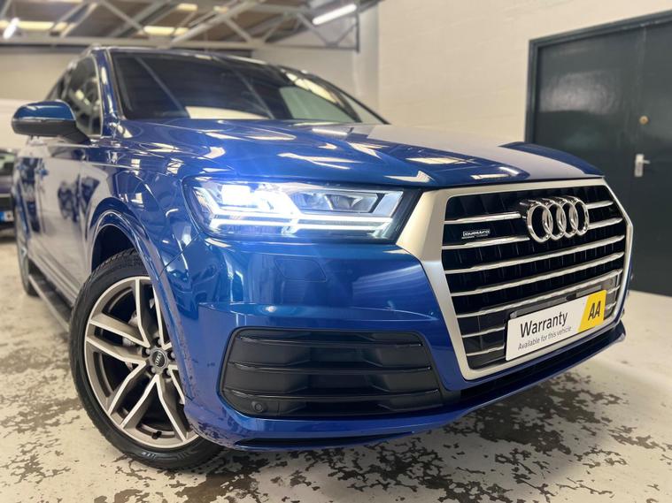 2017 Audi Q7 3.0 TDI V6 S line Tiptronic quattro (Euro 6) 5dr7-Seater | 12 Months AA Breakdown | Finance AvailableLooking for the ultimate blend of luxury, power, and family practicality? This stunning 2017 Audi Q7 offers a superior driving experience. Whether you're towing, commuting, or heading on a family adventure, this 7-seater SUV delivers on every front. ?️ PEACE OF MIND INCLUDED6-Month AA Warranty for total confidence.12 Month MOT from purchase12-Month AA Roadside Assistance/Breakdown Cover included.Finance Available (Subject to status) – Competitive rates tailored to you.HPI Clear & Multi-point safety inspected.Service history included? KEY HIGHLIGHTSPerformance: 3.0L V6 TDI engine producing effortless power.Ulez Compliant: Euro 6 engine meets all stringent UK emission standards.Speed: Impressive 0-62mph in just 6.5 seconds.Quattro AWD: Legendary four-wheel-drive system for all-weather safety.Efficiency: Low insurance group rating for more economical ownership.Towing: Massive 2, 800kg towing capacity – perfect for caravans or trailers? PREMIUM S LINE SPECIFICATIONThis vehicle boasts an excellent interior and exterior condition, featuring:Exterior: S line styling pack, 20'' alloy wheels, and All-Weather LED Headlights for crystal-clear dealer's website Luxurious leather/Alcantara interior with Heated Front Seats.Climate: Deluxe Four-Zone Automatic Climate Control (perfect for all 7 passengers).Technology: Bluetooth Interface for seamless calls/music and MMI Navigation.Convenience: Automatic Light and Rain Sensors, plus Front and Rear Parking Sensors.? CONTACT US TODAYAvoid disappointment! This high-spec Audi Q7 is ready for its next owner..