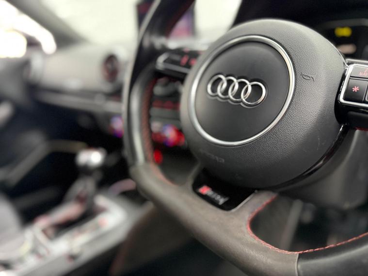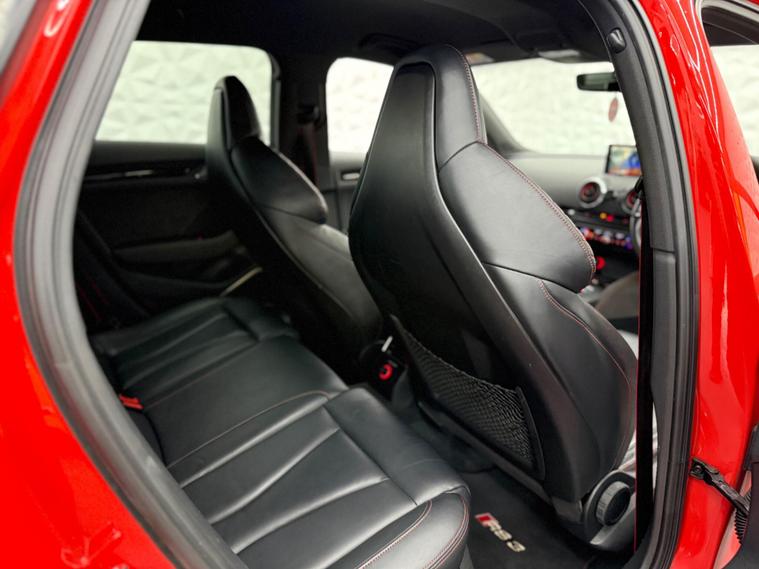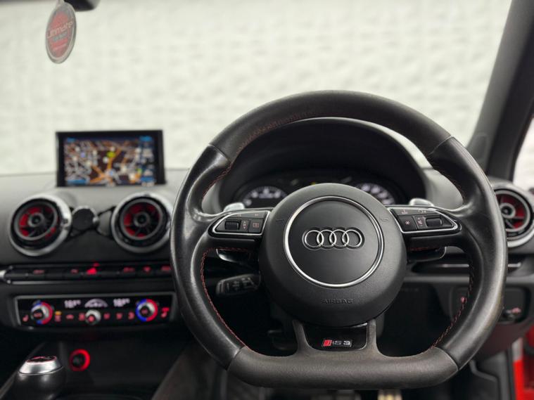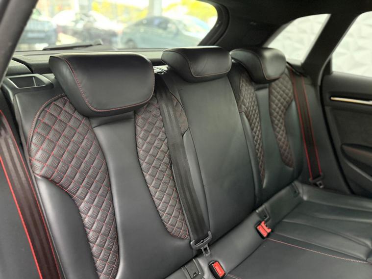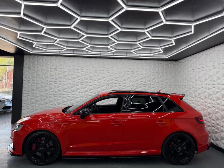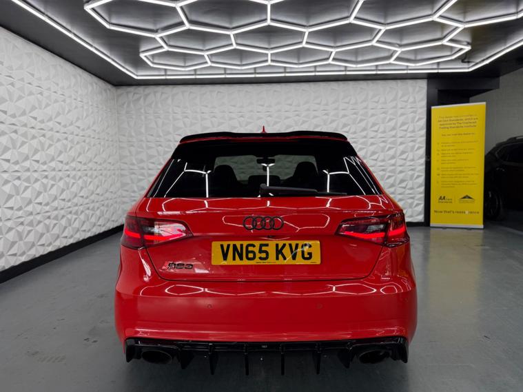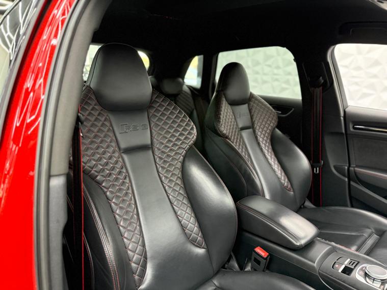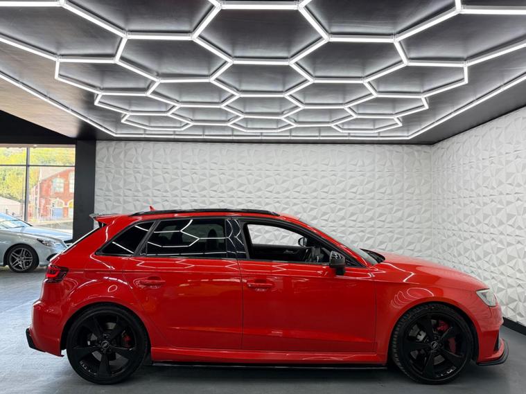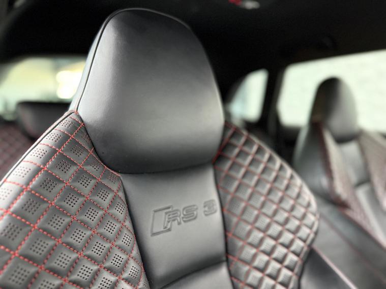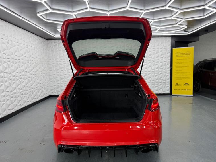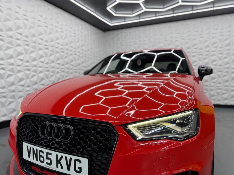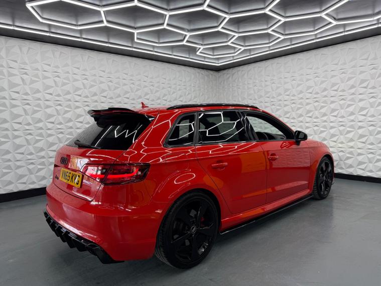 This Audi RS3 TFSI from 2015 offers exceptional peace of mind with an extended Audi Warranty, valid for 60 months or 90, 000 miles, including unlimited mileage for the first 24 months, and benefits from a clear vehicle history check. This powerful four wheel drive model features a 2.5 litre petrol engine and meets Euro 6 emissions standards. Inside, you will find luxurious Fine Nappa leather RS Super Sports seats in black with striking Crescendo Red stitching and an RS3 logo, complemented by a high gloss black styling package and black roof rails.Experience exhilarating performance with this RS3, capable of accelerating from 0-62mph in just 4.3 seconds, a highlight that demonstrates its superior capability compared to many other vehicles. The inclusion of a rear view camera with parking assistance further enhances its practicality and ease of use, making this a compelling choice for those seeking both performance and sophisticated features..
