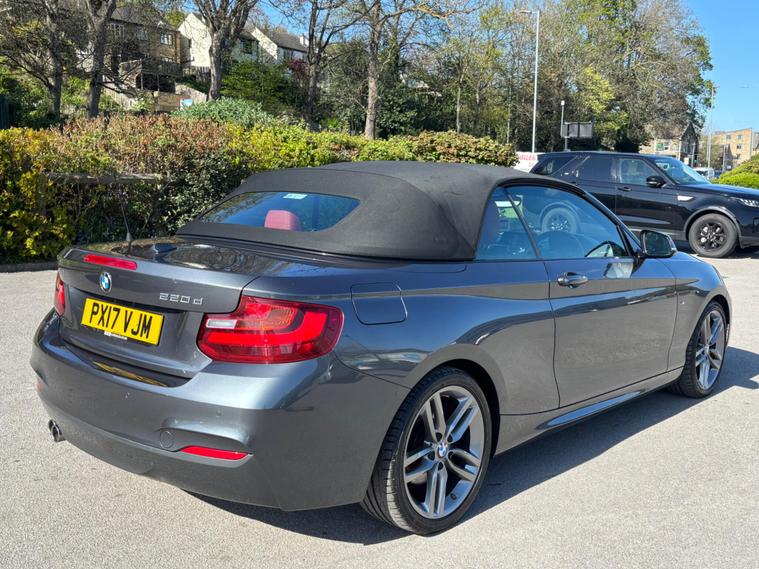 Ultra-Low Mileage | Excellent Service History | Exceptional ConditionWe are pleased to offer this highly desirable, high-specification, well-maintained, low-mileage example of the BMW 2 Series 2.0 220d M Sport Convertible Automatic. Finished in sophisticated Mineral Grey Metallic with a contrasting Black Soft Top, and complemented by a Full Coral Red Dakota Leather interior, this 190 bhp model is in exceptional condition and has been maintained to an excellent service history standard.Vehicle OverviewEngine/Gearbox: 2.0d (190 bhp) with Sport Automatic Transmission & PaddlesMileage: 17, 396 milesOwners: Only 2 owners (last owner since eight months old)MOT: Valid until March 26th 2027Includes: 2 keys, full handbook pack, and 6 months nationwide warrantyExcellent Service HistoryThis vehicle features a comprehensive Digital Service History, maintained strictly by mileage:5, 751 | 7, 514 | 9, 373 | 11, 919 | 12, 848 | 15, 027 | 17, 396 (Just Serviced)High-Value SpecificationThis M Sport features a rare and valuable array of factory-fitted options:Driver Comfort Pack: Park Distance Control (PDC) and Cruise Control with braking function.Harman Kardon Hi-Fi: The premium audio choice for crystal-clear sound.Heated Front Sports Seats: Finished in striking Coral Red Dakota Leather.18'' BMW M Double Spoke 461 Wheels: Perfectly complementing the M Sport styling.Xenon Headlights: Providing superior night visibility with a dedicated cleaning system.Business Navigation: Integrated BMW maps with Connected Drive services.Auto-Dimming & Folding Mirrors: Power-folding mirrors with automatic dip function.M Sport Package: M Aerodynamics, M Sports Suspension, and M Leather Steering Wheel.We have been established in Baildon for over 20 years. All our vehicles are fully inspected, prepared, and valeted. We are finance specialists. Part exchange is welcome. All major credit and debit cards accepted. Open 7 days. Our postcode is BD17 7EX..