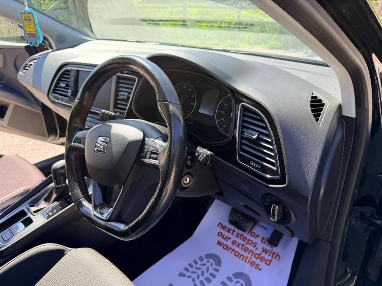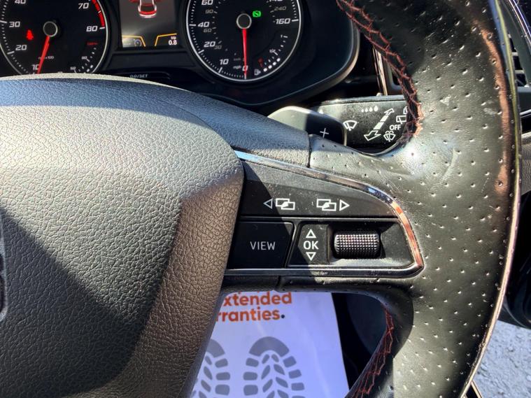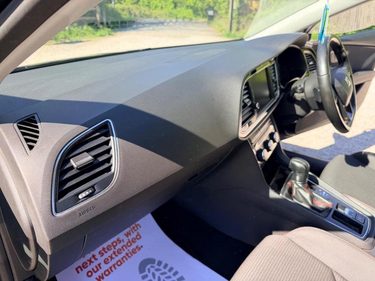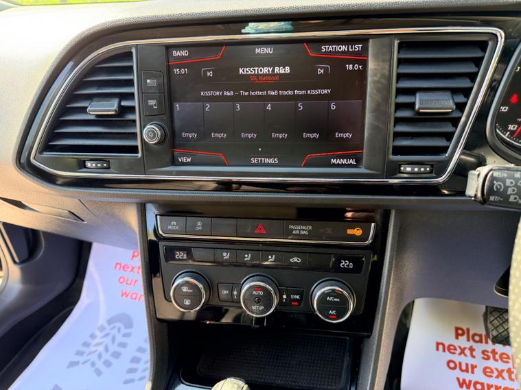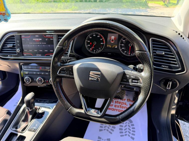 This 2018 SEAT Leon TSI FR Technology boasts an MOT valid until September 2026, offering excellent peace of mind. This Euro 6 compliant 1.8 litre petrol model comes with a 6 month warranty and has a clear vehicle history check. The last service was completed on 11 November 2025 at 68, 751 miles, and it benefits from partial service history. Notable features include striking 18 inch Performance alloy wheels, a Park Assistance Pack with front and rear sensors and a rear camera, and the Dynamic and Comfort Pack. You will also enjoy the SEAT Sound System and full LED headlights.Experience impressive performance with this Leon, capable of accelerating from 0 to 62 miles per hour in just 7.2 seconds, a speed that sets it apart from many other vehicles in its class. The generous boot space ensures practicality for all your needs, whether it's for daily errands or longer journeys. This FR Technology variant combines sporty aesthetics with advanced technology, making it a compelling choice for those seeking a well equipped and dynamic driving experience..