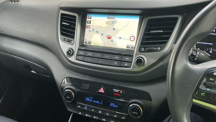 This 2018 Hyundai TUCSON GDi SE Nav is presented with a clear vehicle history check, offering you peace of mind. This 1.6 litre petrol model, compliant with Euro 6 emissions standards, features an 8 inch touchscreen satellite navigation system complete with Traffic Messaging Channel, Mapcare and Tom Tom LIVE Services, including parking assistance. You will also find a helpful reversing camera, dual zone climate control with ioniser, and automatic headlights with a dusk sensor. For added comfort, the front seats are heated, and Bluetooth connectivity is included for seamless phone integration.This SE Nav trim level offers excellent value, highlighted by its low insurance group, making it an economical choice. Enjoy impressive fuel economy of up to 45 miles per gallon, which is better than many similar vehicles. The generous boot space ensures you have plenty of room for shopping or luggage, further enhancing its practicality..