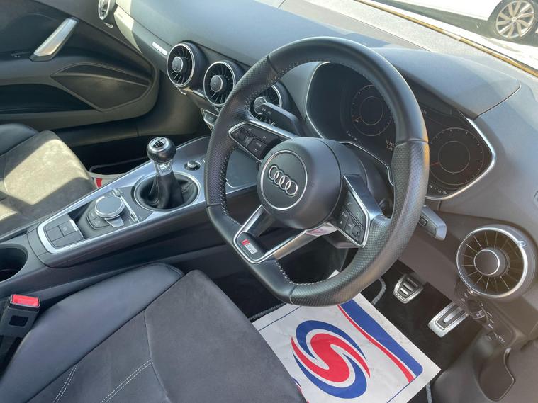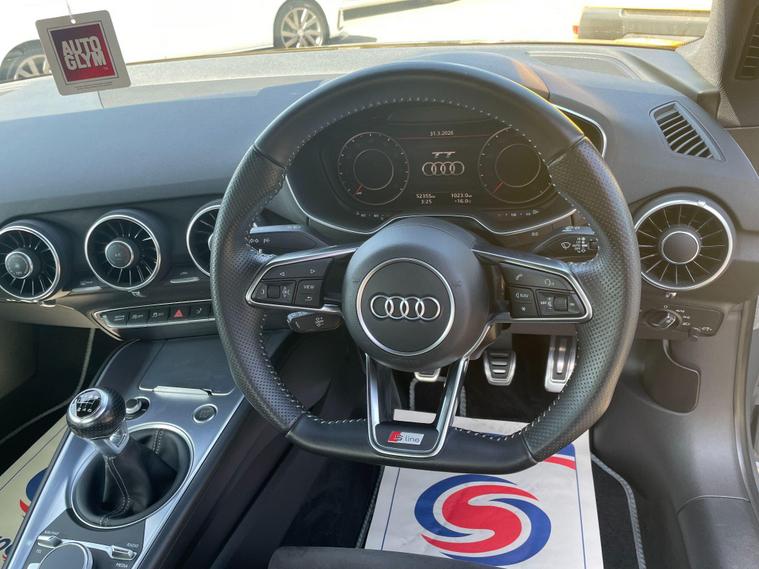 This 2016 Audi TT TFSI S line boasts exceptionally low mileage for its age, having covered just 52, 300 miles, and comes with a clear vehicle history check. This stylish coupe features a 1.8L Euro 6 compliant petrol engine, ensuring efficient performance. Inside, you'll find luxurious S line embossed super sports seats crafted from a combination of leather and Alcantara, finished in black with distinctive rock grey stitching. The car also benefits from practical features such as Hold Assist and is equipped with striking 19 inch alloy wheels in both 5 spoke blade and 5 twin spoke designs, along with automatic headlights activated by a light sensor.The Audi TT TFSI S line offers an impressive fuel economy of 47 mpg, a highlight that demonstrates its efficiency compared to other vehicles in its class. Furthermore, its low CO2 emissions contribute to its environmentally conscious profile. These factors, combined with its sporty design and premium S line trim, make this Audi TT a compelling choice for those seeking a blend of performance, style, and economy..