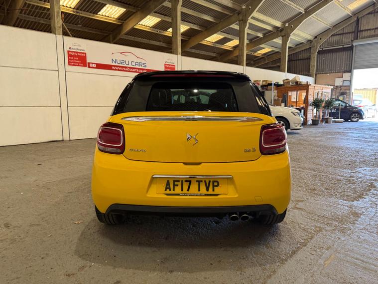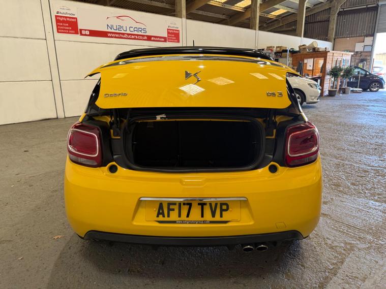 This 2017 DS 3 Cabrio THP DSport boasts exceptionally low mileage for its age, having covered just 32, 175 miles, and comes with a full service history, with its last service completed on 27th April 2026 at 32, 179 miles. This stylish convertible features a 1.6L petrol engine and meets Euro 6 emission standards. It also includes a desirable Leather Pack in black, a reversing camera with rear parking assistance, and Xenon LED Vision headlights for enhanced visibility. For convenience, it offers Bluetooth handsfree connectivity and automatic headlights.This DS 3 Cabrio stands out with its impressive fuel economy, achieving up to 50 miles per gallon, which is better than many similar vehicles. Its low CO2 emissions are also a significant advantage, contributing to lower running costs. Furthermore, it benefits from a low insurance group, making it an economical choice for many drivers. The spacious boot offers practicality, ensuring you have ample room for your luggage or shopping. A 12 month MOT will be provided upon purchase, offering peace of mind.All cars are handpicked, serviced, and checked by qualified vehicle technicians, and come with at least 3 months warranty. Being affiliated to the AA they also come with 12 months AA Breakdown for added peace of mind. Call us today to make an appointment to come see and test drive what could be your next new car..