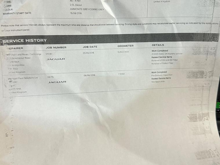 FOR MORE VEHICLES NOT LISTED ON AUTOTRADER PLEASE VISIT dealer's website a full service history and an MOT valid until April 2027, this 2016 Jaguar XE d R-Sport offers excellent peace of mind. This Four Wheel Drive model features a 2.0L Diesel engine and meets Euro 6 emissions standards. It comes with a 2 month warranty for added security. Notable features include the desirable Panoramic Glass Pack with an opening sunroof, a Black Pack for enhanced styling.This Jaguar XE d R-Sport stands out with its impressive fuel economy, achieving a highlight of 61 mpg, which is better than many similar vehicles. Its acceleration is also noteworthy, reaching 0-60mph in just 7.5 seconds, demonstrating a strong performance. Furthermore, this model benefits from a low insurance group, making it a more economical choice to own and run compared to other cars in its class.FREE DELIVERY WITHIN 40 MILES AT ADVERTISED PRICE!! NATIONWIDE DELIVERY, DRIVE AWAY INSURANCE, FINANCE AND WARRANTIES AVAILABLE ON ALL CARS! Walk around video available via whats app. Same day delivery available!! All vehicles come with an Engine service which consists of: Oil change, Oil filter, Fuel Filter, Air Filter and Cabin Filter! 2016 16 Reg Jaguar XE 2.0d R-Sport Auto AWD Euro 6 (s/s) 4 door. Drives Flawlessly without any issues. Gearbox and engine are spot on. Hpi Clear. Mot April 2027. 106, 325 Miles Warranted with Service history. 2 keys, Double Panoramic Tilt and Slide roof, Heated steering Wheel, Reverse Camera, Sat Nav, Alloys, Air con and much more. Read specification list below. Ring for more information. Part Exchange at TRADE price, Late viewings also available!.