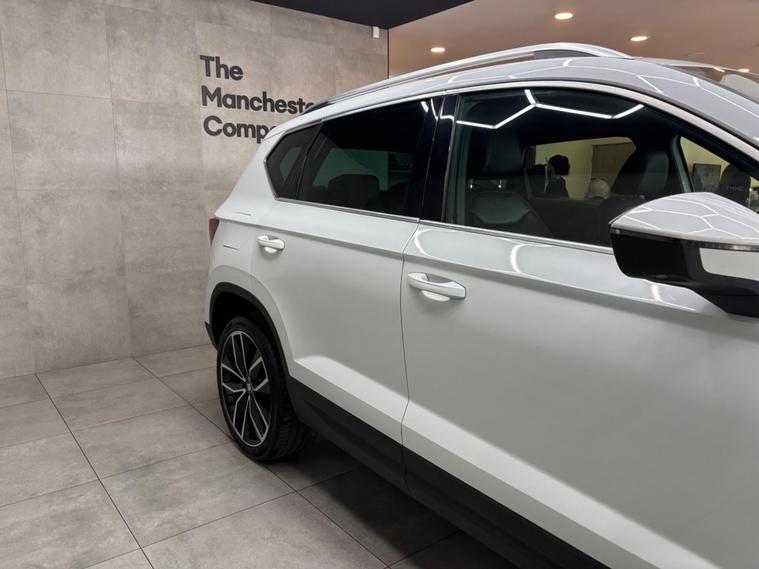 This 2018 SEAT Ateca EcoTSI XCELLENCE offers a superb blend of style and practicality, making it an excellent choice for those seeking a reliable and well equipped family car. With its 1.4 litre petrol engine and Euro 6 emissions class, this XCELLENCE trim model is designed for efficiency. You'll appreciate the convenience of KESSY keyless entry and go, allowing you to unlock and start the car without reaching for your keys, alongside wireless phone charging to keep your devices powered up. Manoeuvring is made easier with the rear view camera and rear parking sensors, providing clear assistance when parking. Furthermore, the Winter Pack ensures comfort during colder months with heated seats, and the dual zone climate control allows both driver and passenger to set their preferred temperature.This SEAT Ateca stands out with its impressive fuel economy, achieving up to 52 miles per gallon, which indicates it is more economical than many similar vehicles. Its low CO2 emissions also contribute to its appeal, suggesting a more environmentally conscious performance. The acceleration is brisk, reaching 0 to 62 miles per hour in just 8.5 seconds, demonstrating a responsive driving experience. Additionally, this model benefits from a low insurance group, meaning potentially lower running costs. The generous boot space provides ample room for shopping, luggage, or sports equipment, highlighting its suitability for everyday life and adventures..