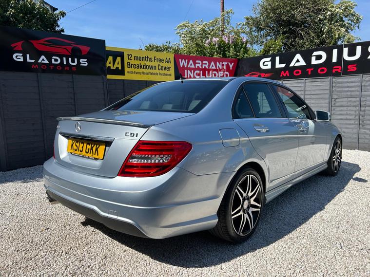 ***VIEWING BY APPOINTMENT ONLY***LOW MILEAGE • JUST SERVICED • MOT UNTIL DECEMBER 2026 • PART SERVICE HISTORY • 3 MONTH WARRANTY • 12 MONTH AA COVER • FINANCE FROM 12.5% APR • PART EXCHANGE WELCOMEWell presented 2013 Mercedes-Benz C Class C220 CDI BlueEfficiency AMG Sport Plus G-Tronic+ finished in silver with just 77, 000 miles, which is low mileage for this model. A refined and well-built saloon offering comfort, reliability and strong performance.This example comes with part service history and has been just serviced by us, ensuring it is ready for its next owner. It also benefits from MOT valid until December 2026, giving added peace of mind.On the road the 2.1 diesel engine paired with the automatic gearbox delivers smooth and effortless performance. These engines are known for their durability and this one drives exactly as it should — solid, responsive and comfortable.The car presents in immaculate body condition and being the AMG Sport Plus model, it comes well equipped with half leather Alcantara interior, satellite navigation, parking sensors, climate control, Bluetooth telephone connectivity and 18-inch alloy wheels, offering a premium driving experience.A great example of German build quality, offering a strong balance of performance, comfort and everyday usability.Supplied with keys and fully inspected, prepared and road tested before sale.All vehicles are inspected, prepared and road tested before sale, and we welcome any inspection or test drive prior to purchase so you can be completely satisfied.We are proud to be a 5-star rated AA Approved Dealer, giving you additional confidence when buying from us.Please note this is a used vehicle and light age-related marks may be present consistent with age and mileage.Call 01452235712 to arrange a viewing by appointment.