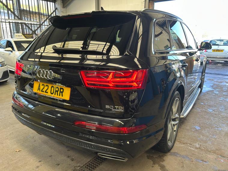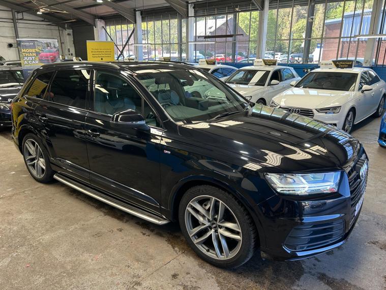 This 2019 Audi Q7 TDI V6 Black Edition presents a remarkable opportunity with its exceptionally low mileage of just 64, 500 miles for its age. This impressive estate car, finished in the sought after Black Edition trim, boasts a powerful 3.0 litre diesel engine paired with Audi's renowned Four Wheel Drive system, ensuring confident handling in all conditions. With seating for seven, it offers ample space for families and friends, while its Euro 6 emission class reflects its modern efficiency. The vehicle is also capable of towing up to 3500 kg, making it a versatile choice for various needs.The Q7 TDI V6 Black Edition comes equipped with a host of desirable features designed to enhance your driving experience. The Audi Parking System Plus, complete with front and rear sensors, makes manoeuvring effortless. Enjoy the open air with the panoramic glass sunroof, which can be opened for added enjoyment. Stay comfortable with Dual-Zone Electronic Climate Control, and benefit from the convenience of Light and Rain Sensors that automatically manage headlights. Connectivity is seamless thanks to the Audi Smartphone Interface, supporting both Android Auto and Apple CarPlay. Furthermore, this model benefits from a low insurance group, indicating potentially lower running costs. Its acceleration is also a notable highlight, achieving 0-62mph in a brisk 6.3 seconds, demonstrating its strong performance capabilities compared to other vehicles in its class..