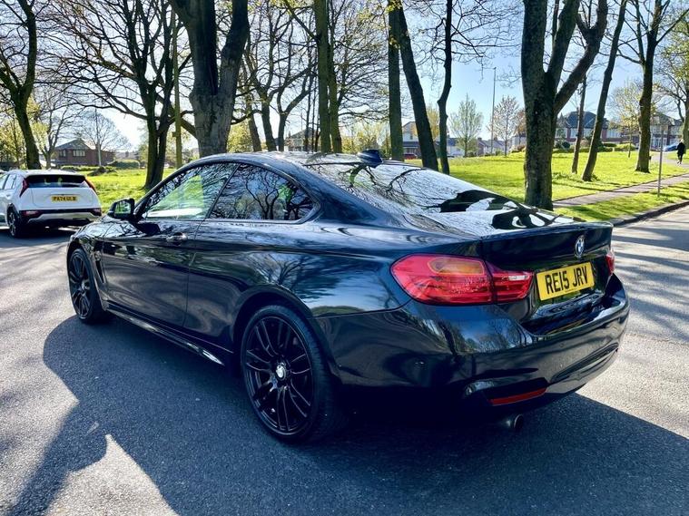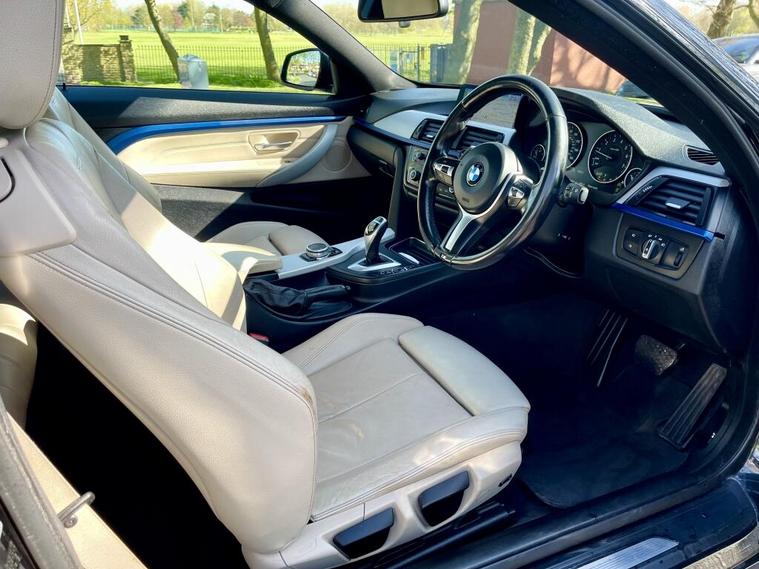 2015 BMW 4 Series M Sport2.0 420i M Sport Coupe 2dr Petrol Auto xDrive Euro 6 (s/s) (184 ps)AUTOMATICMillage is 96kMOT: 12Mth NOT ADVISORSService historyCar starts and drives Absolutely perfectHPI Clear18in Alloy Wheels - Light M Star Spoke - 400M, 19in Alloy Wheels - M Star Spoke - 403M, ASC - Automatic Stability Control, Air Breather - Black High Gloss, Air Conditioning - Automatic with Two-Zone Control, Air Conditioning and Radio Control Panel in High Gloss Black, Airbags - Passenger Deactivation, Alarm System Thatcham 1 with Remote Control, Ambient Lighting - Switchable BMW Classic Orange - Cold White - LED, Armrest - Rear Centre, Automatically Dimming Rear View Mirror, Auxiliary Input, BMW Apps Interface, BMW ConnectedDrive Online Services, BMW Remote Services, BMW TeleServices, Battery Safety Cut Off, Bluetooth Hands Free with Audio Streaming, Bluetooth Hands Free with USB Audio Interface, Bottle Holders - Front Door Storage Compartments, Brake Drying, Bumpers - Body Colour, CBC - Cornering Brake Control, Comfort Go Keyless Engine Start, Concierge Service, Crash Sensor, Cruise Control with Brake Function, DAB - Digital Radio, DBC - Dynamic Brake Control, DSC - Dynamic Stability Control Plus, DTC - Dynamic Traction Control, Daytime Driving Lights, Display - 6.5in Colour Screen, Door Handles - Body Colour, Door Mirrors - Body Coloured Housing, Door Mirrors - Electric and Heated, Door Sill Finishers - M Designation, Drive Performance Control - ECO PRO - Comfort - Sport and Sport Plus, Dynamic Brake Lights, Electronic Differential Lock, Enhanced Bluetooth Telephone Preparation with USB Audio Interface and Voice Control, Extended Lighting, Exterior Mirrors - Automatically Dimming - Folding, Exterior Trim - High Gloss Shadowline, First Aid Kit, Front Fog Lights, Full Black Panel Display, Gear Knob - Leather, Handbrake - Leather, Head Restraints - Front and Rear, Headlight Wash, Headlights - Automatic Activation, Headlights - Beam Throw Control, Headlining - M Anthracite, Heat Protection Glazing with Green Tint, Information Plus, Interior Lighting - Front and Rear Centre, Interior Trim - Aluminium Hexagon with Black High Gloss Finisher, Interior Trim - Aluminium Hexagon with Estoril Blue Finisher, Interior Trim Finisher - Estoril Blue, Loading Aid, Luggage Compartment - Lashing Eyes, M Aerodynamic Bodystyling, M Leather Gear Lever, M Sport Instrument Cluster, M Sport Package, Media Package - BMW Professional, Navigation System - BMW Professional Multimedia, PDC - Park Distance Control - Front and Rear, PDC - Park Distance Control - Rear, Personal Profile, Real Time Traffic Information, Reversing Assist Camera, Roof Mouldings - Body Colour, Seats - Front Heated, Seats - Front Sports, Seats - Split Rear 60-40, Shark Fin Aerial, Side Exterior M Designation Badges, Side Impact Protection, Speakers x6, Sport Automatic Transmission, Sun Protection Glazing, Sun Visors with Vanity Mirrors and Ticket Holder, Surround View, TPMS - Tyre P.