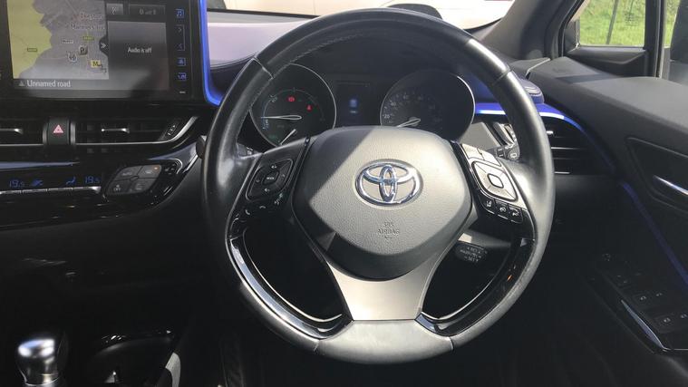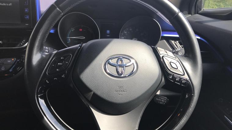 This 2017 Toyota C-HR VVT-h Dynamic is a Toyota manufacturer approved vehicle, boasting a full service history and a 12 month warranty for your peace of mind. With only 57, 927 miles on the clock, it represents low mileage for its age. This Euro 6 compliant model features a 1.8L petrol hybrid engine and comes equipped with a range of notable features including Bluetooth connectivity, Blind Spot Monitor with assistance, Toyota Safety Sense with Adaptive Cruise Control, automatic headlights, and a parking pack with front and rear sensors.The highlights of this C-HR Dynamic demonstrate its superior value compared to other vehicles. Its exceptional fuel economy of 72 mpg means fewer trips to the petrol station, while its low insurance group and low CO2 emissions contribute to lower running costs. These factors combine to make this Toyota C-HR a sensible and economical choice for any driver..