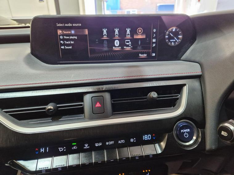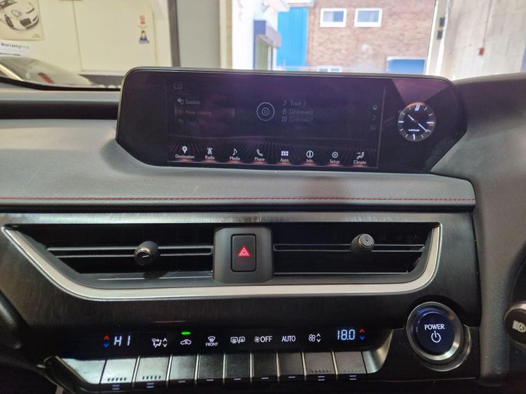 This 2019 Lexus UX 250h F Sport boasts a clear vehicle history, offering you peace of mind. This stylish compact SUV features a sophisticated 2.0 litre petrol hybrid engine, meeting Euro 6 emissions standards. Inside, you'll find a premium F Sport trim, complete with a heated leather steering wheel that includes paddle shifts for an engaging driving experience, and heated front seats for added comfort. The F Sport also benefits from LED low and high beam headlights with an automatic high beam function, and Bluetooth connectivity for seamless phone integration.The Lexus UX 250h F Sport is designed to impress, offering a compelling blend of performance and efficiency. Its hybrid powertrain contributes to low CO2 emissions, making it an environmentally conscious choice. Furthermore, its placement in a low insurance group means lower running costs. For those who appreciate responsive driving, this model accelerates from 0 to 62 miles per hour in a swift 8.5 seconds, demonstrating its dynamic capabilities and setting it apart from many other vehicles in its class..