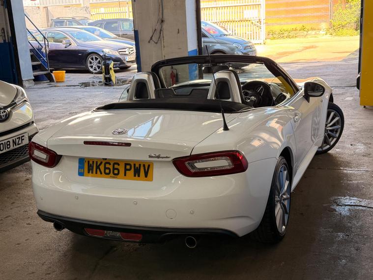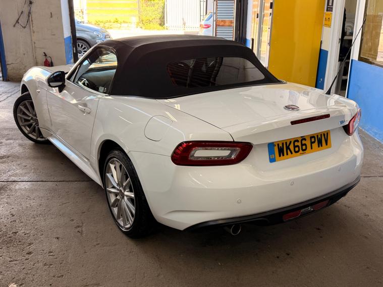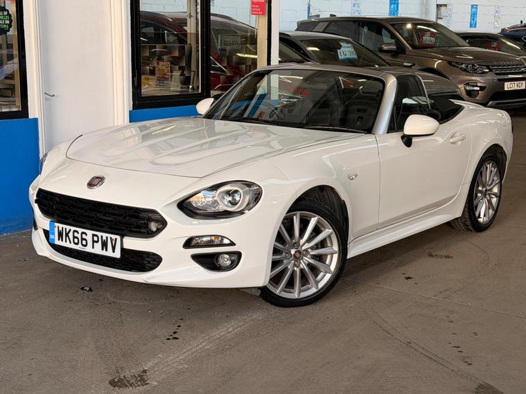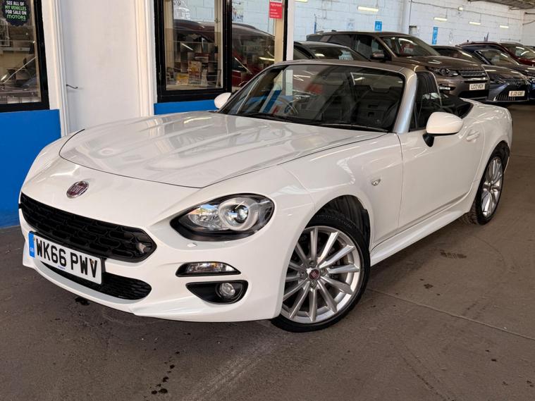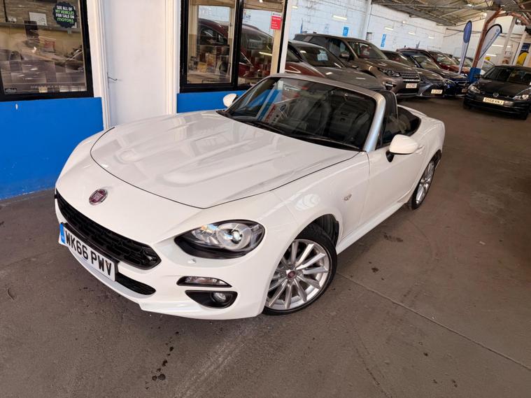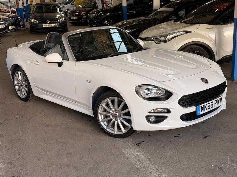 This 2016 Fiat 124 Spider Lusso Plus presents an exceptional opportunity with its remarkably low mileage of just 22, 000 miles, a testament to its careful ownership by only two previous keepers. This stylish convertible is powered by an efficient 1.4L Euro 6 compliant petrol engine, offering a pleasing fuel economy of 44 mpg. It comes equipped with a comprehensive 3 months warranty for your peace of mind, and a fresh 12 months MOT will be provided upon purchase. The vehicle also benefits from a recent service completed on 24th April 2026, ensuring it is ready for its next adventure.The Lusso Plus trim level enhances the driving experience with a host of desirable features. Enjoy the comfort of heated seats, and let the rain and dusk sensors automatically manage your headlights. Keyless entry adds convenience, while the LED technology headlights and Daytime Running Lights, complete with headlight washers, provide excellent visibility. Inside, the 7in touchscreen radio offers DAB, Bluetooth connectivity, WiFi, two USB ports, and an Aux in, all controlled via a handy multimedia knob. This Fiat 124 Spider also boasts low CO2 emissions, making it a more environmentally conscious choice compared to many similar vehicles..