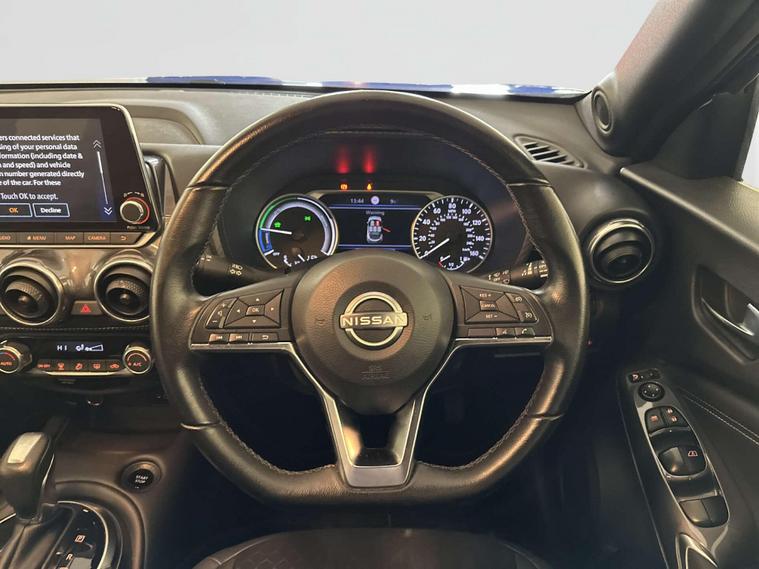 Introducing the stylish and efficient Nissan Juke 1.6 N-Connecta SUV! Finished in a sleek Blue colour, the Nissan Juke is sure to turn heads wherever you go. Powered by a petrol hybrid auto Euro 6 engine with 143 ps, this SUV offers a perfect blend of power and fuel efficiency.Step inside the spacious and comfortable cabin of the Nissan Juke N-Connecta and experience a range of premium features designed to enhance your driving experience. From advanced technology to luxurious touches, this SUV has it all.Don't miss out on the opportunity to own this fantastic Nissan Juke. Visit us today to take a test drive and see for yourself why this SUV is the perfect choice for your next dealer's website finance is also available.We are open 7 days a week and have more than 1500 cars to choose from.All our Euro 4 Petrol and Euro 6 Diesel vehicles meet the ULEZ standard.Vehicle specification can be found below. From time to time vehicles have manufacturer recalls notified. Please read our recall policy on our website for further information. Please be advised that the advertised electric vehicle (EV) listings may experience battery degradation over time, resulting in reduced performance and range compared to the original specifications. Factors such as usage patterns, environmental conditions, and charging practices can contribute to this degradation. While we strive to provide accurate information, the actual battery health and performance of each EV may vary. Customers are encouraged to conduct thorough research and consider the potential impact of battery degradation before making a purchase decision. We recommend consulting with a qualified technician or conducting a battery health inspection for further assessment.Disclaimer: While every effort is made to ensure the accuracy of vehicle specifications, features, and descriptions, errors and omissions may occur. Specifications and equipment may vary and may not be present on the vehicle at the point of sale. Buyers are advised to confirm all details with the seller before completing a purchase..