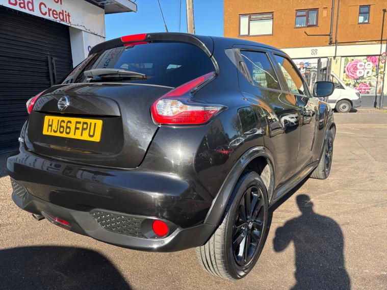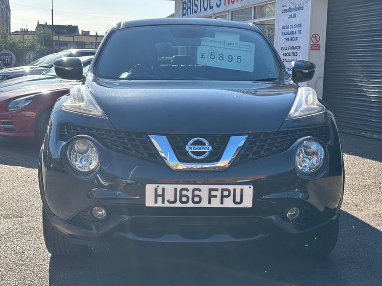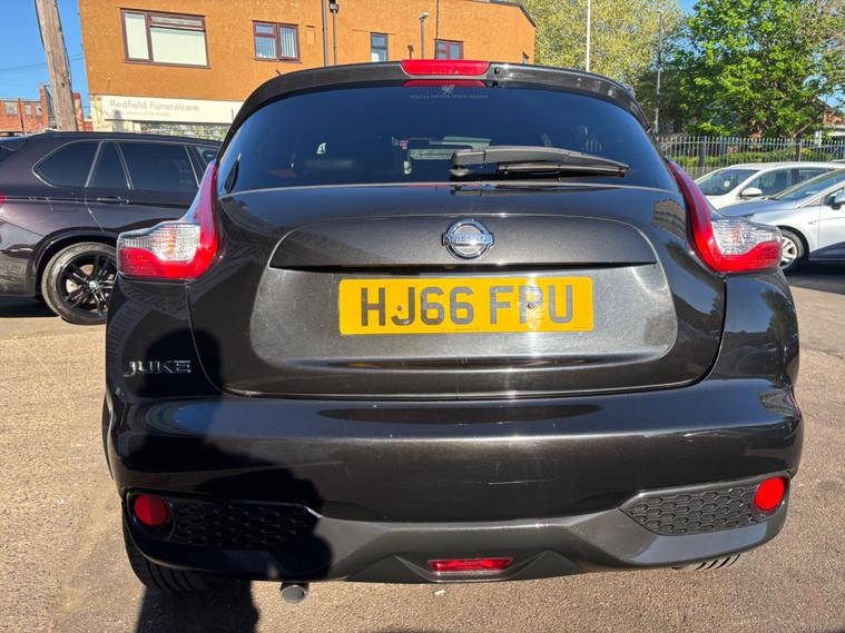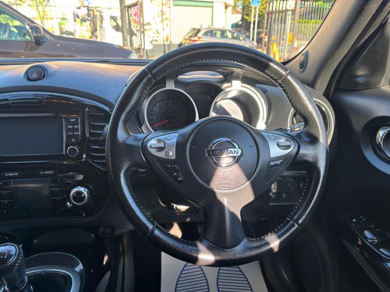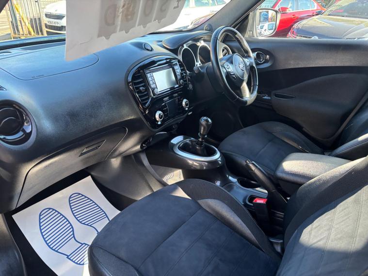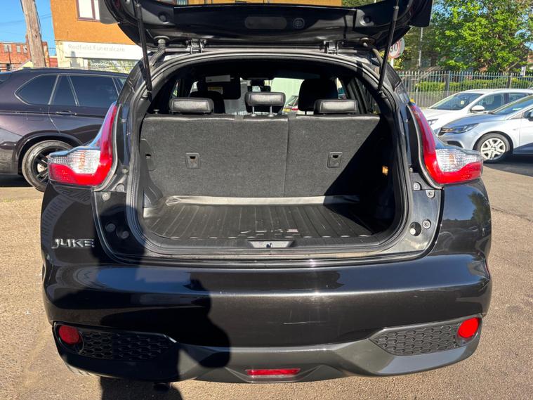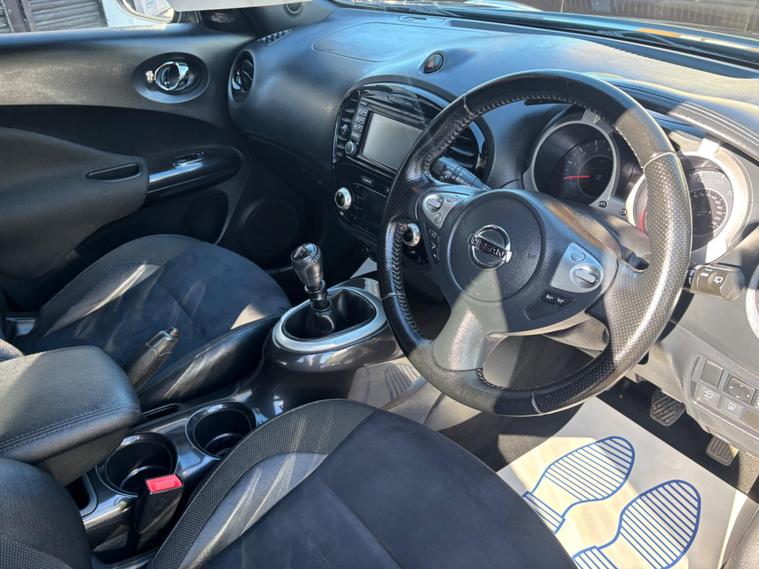 HERE WE HAVE ON SALE IS THIS FANTASTIC NISSAN JUKE 1.2 DIG-T N-CONNECTA EURO 6 FINISHED IN METALLIC BLACK...................IT COMES WITH HALF LEATHER/HALF SUEDE SEATS, SATELLITE NAVIGATION, DAB RADIO/CD PLAYER, MULTI FUNCTION STEERING WHEEL, BLUETOOTH, SAT NAV, REVERSE CAMERA, DUAL CLIMATE CONTROL, SPEED LIMITER, PUSH TO START, ELECTRIC WINDOWS, AIR CONDITIONING, ELECTRIC POWER-FOLD MIRRORS, ALLOY WHEELS, AND REMOTE CENTRAL LOCKING X2 KEYS....................THIS VEHICLE BOASTS FULL SERVICE HISTORY CONSISTING FROM 9122 MILES, 21917 MILES, 27366 MILES. 39769 MILES AND 58133 MILES MEANING THIS VEHICLE HAS BEEN MAINTAINED TO A VERY HIGH STANDARD.............THIS VEHICLE WILL BE SERVICED AT POINT OF SALE...............ONE FORMER KEEPER...........IT IS PRESENTED IN EXCELLENT CONDITION THROUGHOUT AND DRIVES LIKE WISE............................VIEWING ESSENTIAL..