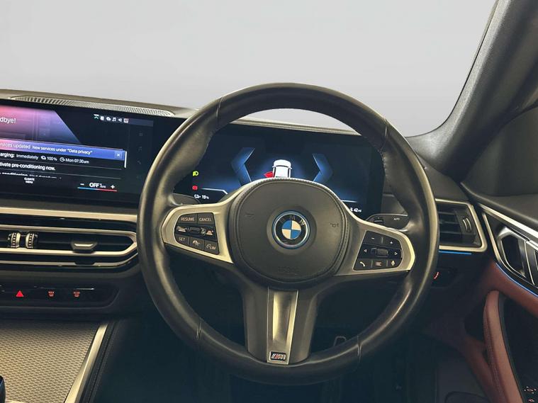 Introducing the Bmw I4 – where luxury meets electrifying performance. This stunning Bmw I4 40 83.9kWh M Sport Gran Coupe is not just a car; it's a statement. Dressed in an immaculate Alpine White finish, the Bmw I4 exudes elegance and style. Its 19-inch M Light Y-Spoke Style 859 M Bicolour alloy wheels with mixed tyres add a touch of sportiness, ensuring you turn heads wherever you go.Step inside to experience the ultimate in comfort and luxury with the Vernasca Leather interior in Tacora Red, beautifully accented with Black Stitching. The M Sport Pro Package and Model Specific Design Elements elevate your driving experience, providing a perfect blend of performance and aesthetics.Enjoy the added privacy and comfort of Sun Protection Glass, making every journey a pleasure, whether you're cruising through the city or embarking on a long-distance adventure.With its electric auto eDrive delivering an impressive 340 ps, the Bmw I4 offers a driving experience like no other. It's not just about getting from A to B; it's about enjoying every moment in between.Don't miss the opportunity to own this exceptional Bmw I4. It's more than a car; it's a lifestyle choice. Experience the future of driving today.For peace of mind this vehicle has completed a multi point AA dealer's website finance is also available.We are open 7 days a week and have more than 1500 cars to choose from.All our Euro 4 Petrol and Euro 6 Diesel vehicles meet the ULEZ standard.Vehicle specification can be found below. From time to time vehicles have manufacturer recalls notified. Please read our recall policy on our website for further information. Please be advised that the advertised electric vehicle (EV) listings may experience battery degradation over time, resulting in reduced performance and range compared to the original specifications. Factors such as usage patterns, environmental conditions, and charging practices can contribute to this degradation. While we strive to provide accurate information, the actual battery health and performance of each EV may vary. Customers are encouraged to conduct thorough research and consider the potential impact of battery degradation before making a purchase decision. We recommend consulting with a qualified technician or conducting a battery health inspection for further assessment.Disclaimer: While every effort is made to ensure the accuracy of vehicle specifications, features, and descriptions, errors and omissions may occur. Specifications and equipment may vary and may not be present on the vehicle at the point of sale. Buyers are advised to confirm all details with the seller before completing a purchase..