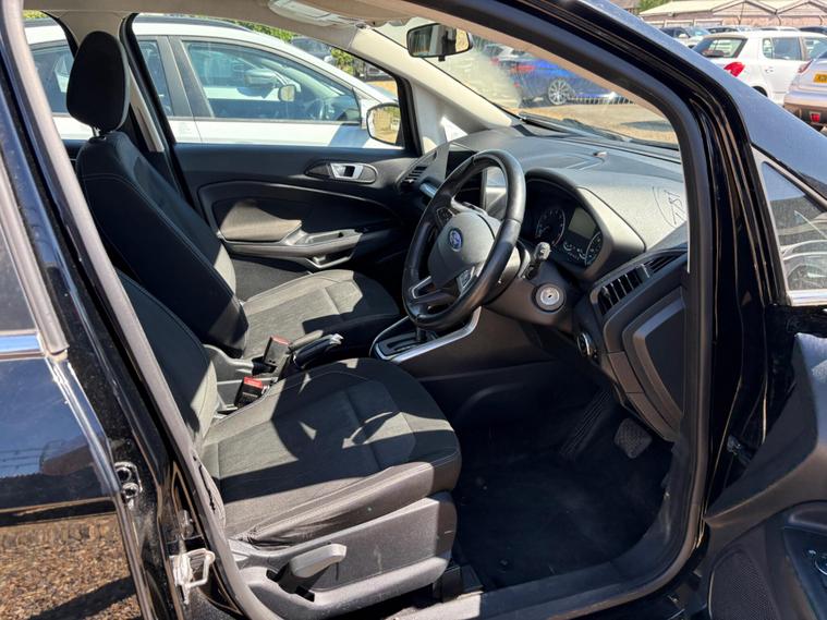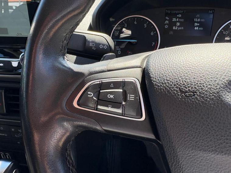 This 2018 Ford EcoSport Zetec T is a remarkable find with exceptionally low mileage for its age, having covered just 24, 260 miles. This Euro 6 compliant 1.0L petrol model boasts a full service history, with its last service completed at 20, 942 miles, and benefits from an MOT valid until March 2027, offering peace of mind. The Zetec trim includes desirable features such as steering wheel paddle shifts for its Select Shift Sports Mode technology, and the Ford DAB Radio with Ford SYNC3, which seamlessly integrates with Apple CarPlay and Android Auto. Manual air conditioning ensures a comfortable cabin environment.This Ford EcoSport stands out with its impressive fuel economy, achieving 46 miles per gallon, which indicates it is more economical than many similar vehicles. Its low CO2 emissions further contribute to its appeal, making it a sensible choice for drivers seeking efficiency. This particular vehicle also comes with a 6 month warranty, adding further reassurance to your purchase..