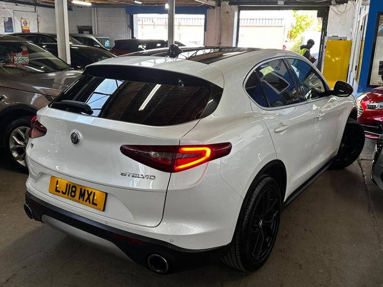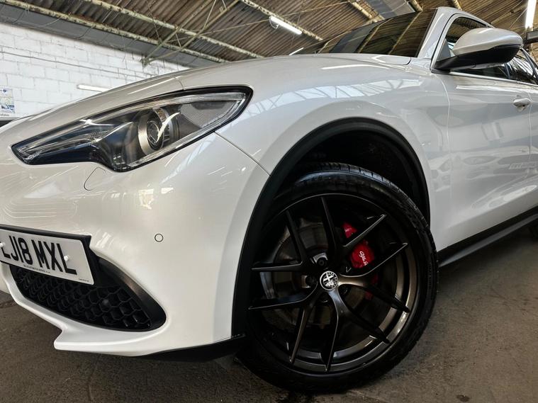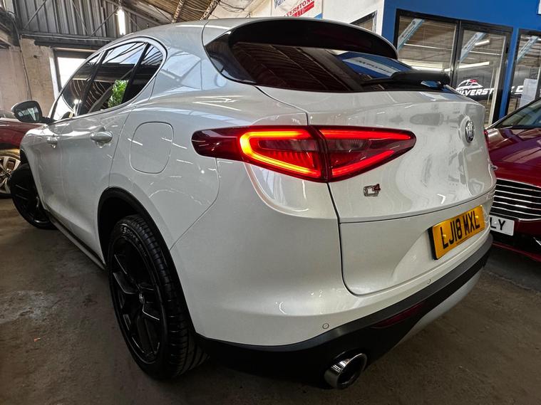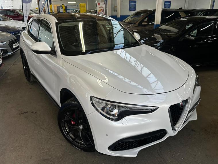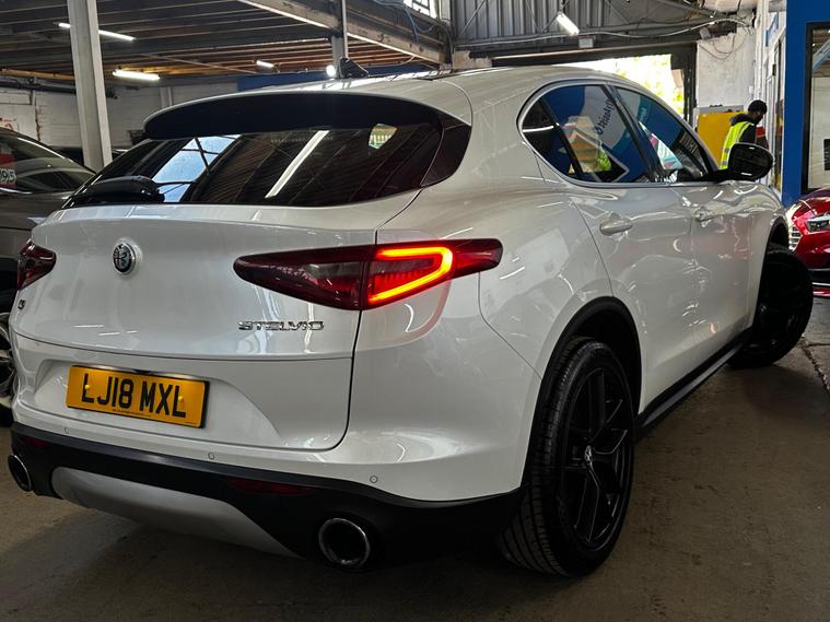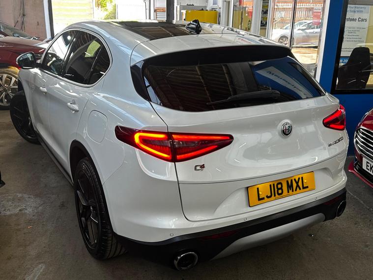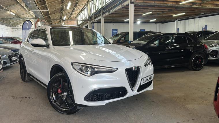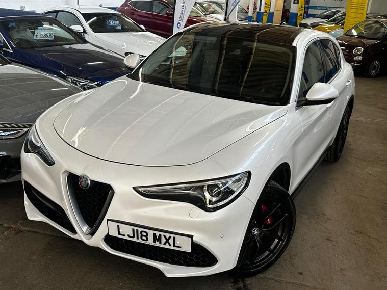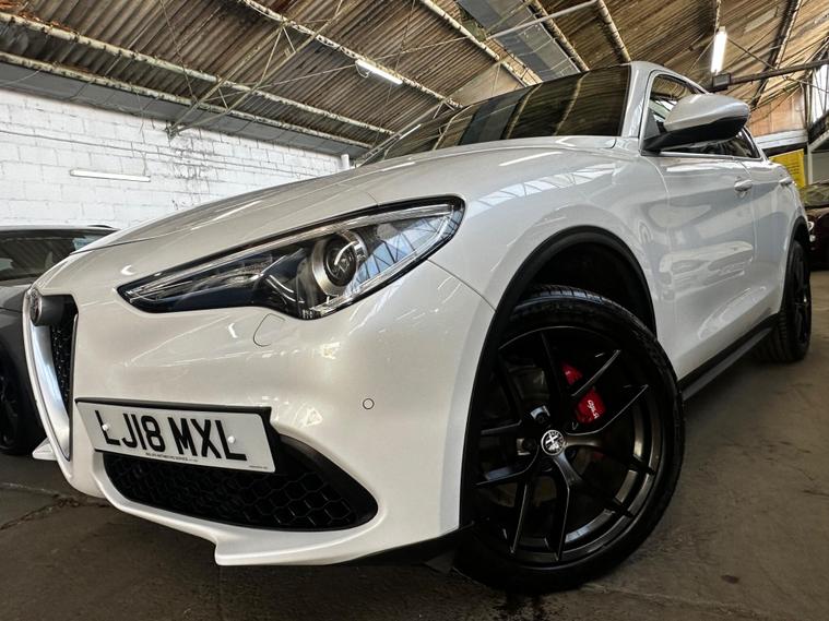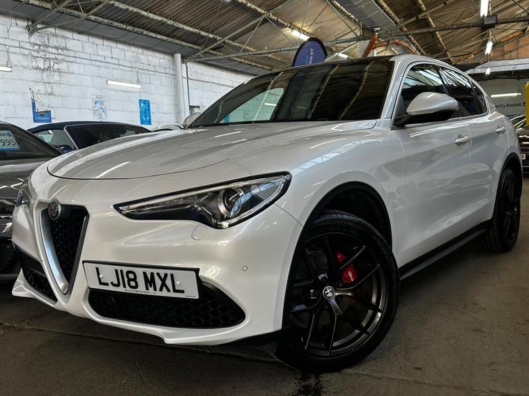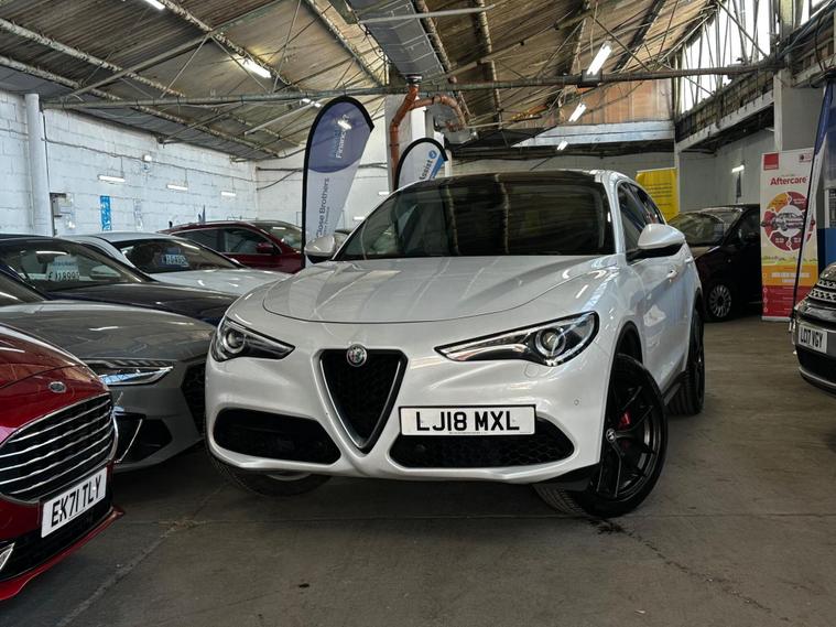 This 2018 Alfa Romeo Stelvio T Milano Edizione boasts a recent full service in April 2026, ensuring its readiness for many miles ahead. This four wheel drive, Euro 6 compliant, 2.0 litre petrol SUV offers a compelling blend of performance and practicality. It comes with a clear vehicle history check and a 3 month warranty for your peace of mind, alongside a 12 month MOT provided on purchase. The Milano Edizione trim level is enhanced by the Lusso Package, featuring heated seats and a heated steering wheel for ultimate comfort.Experience exhilarating performance with a 0-62mph acceleration time of just 5.7 seconds, setting it apart from many similar vehicles. The Sound Theatre by Harman Kardon premium audio system and an electric sunroof add to the refined driving experience. Practicality is also a strong point, with ample boot space for all your needs and rear parking sensors to aid manoeuvrability. Dual zone automatic air conditioning ensures a comfortable cabin temperature for all occupants, and with a towing weight of 2300 kg, this Stelvio is ready for adventure..