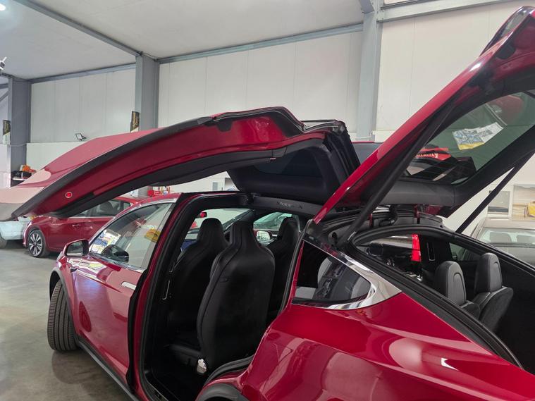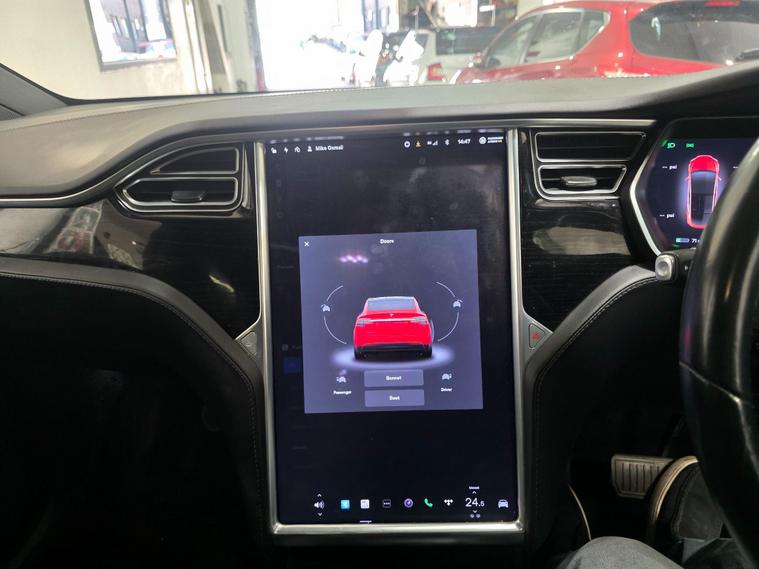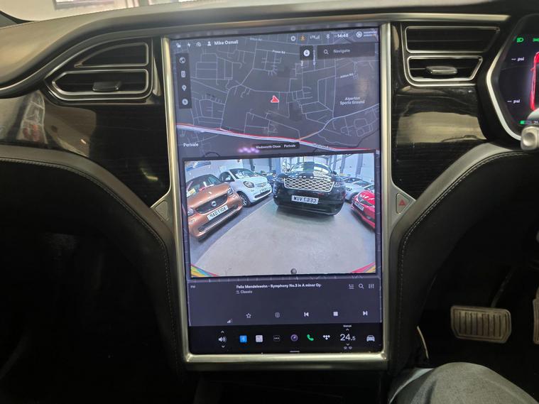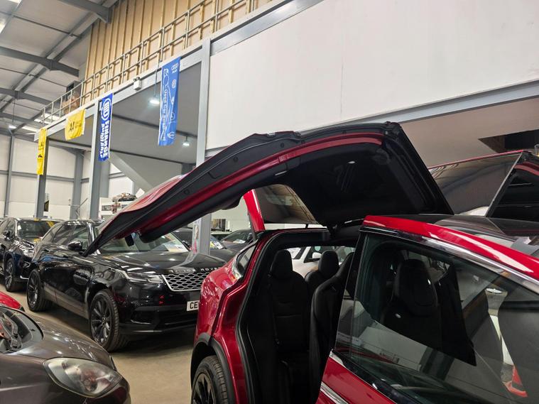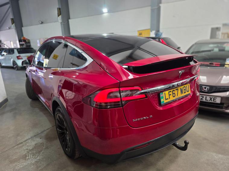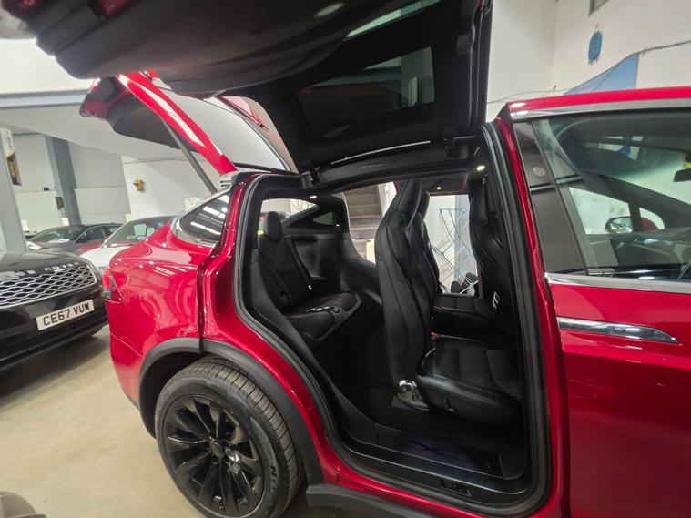 This 2017 Tesla Model X 90D offers an impressive electric driving experience with a substantial 86 kWh battery, providing a maximum range of 303 miles when new. This Four Wheel Drive electric vehicle is equipped with a suite of advanced features designed for convenience and safety. These include parking sensors front and rear, blind spot warning with assistance, and keyless entry for effortless access. Inside, you'll find dual zone climate control to keep all occupants comfortable, and automatic LED headlights that adapt to changing light conditions. The handsfree talking system with Bluetooth connectivity ensures you can stay connected safely on the go.The Model X 90D excels with its remarkable acceleration, achieving 0 to 60mph in just 4.8 seconds, a performance that sets it apart from many similar vehicles. Its practicality is further enhanced by a large boot space, perfect for luggage or shopping. For those needing to transport larger items, it boasts an impressive towing weight of 2268 kg. Charging is convenient, with a full charge at home taking approximately 13 hours using a 7kW charger, and rapid public charging can take the battery from empty to 80% in as little as 53 minutes..