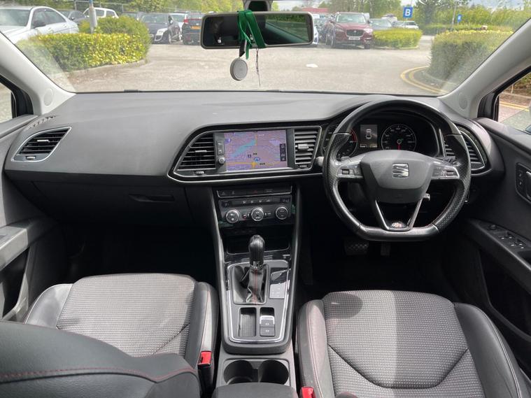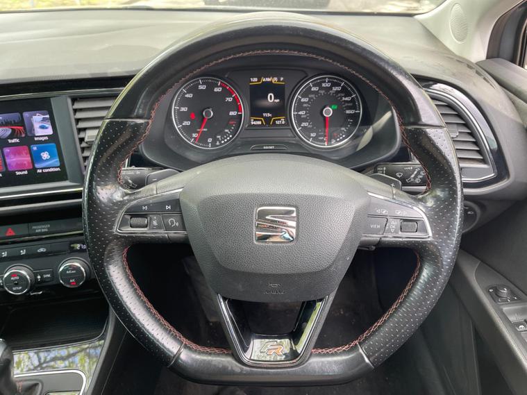 - Steering Wheel - Flat-Bottomed Perforated Leather with Red Stitching and FR Logo