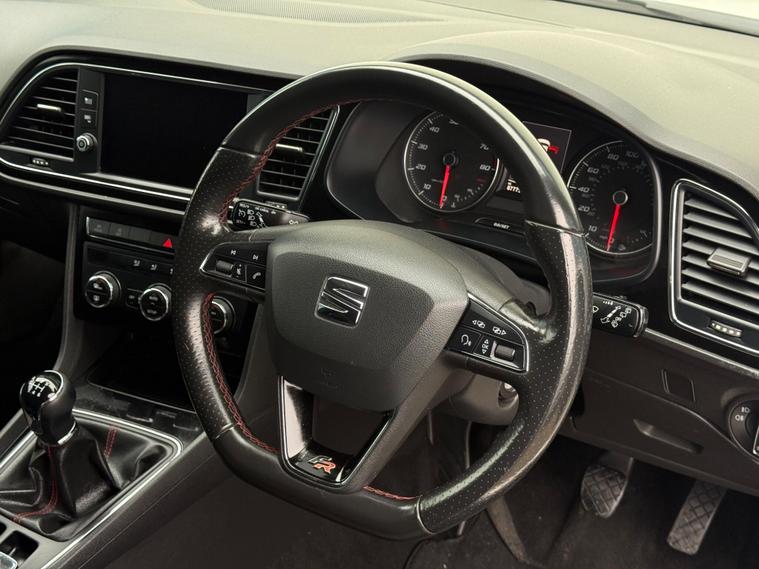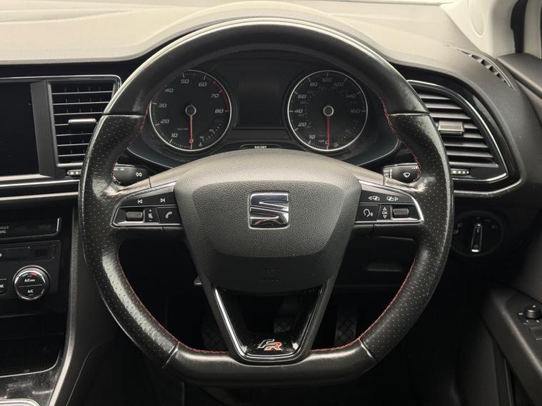 - Steering Wheel - Flat-Bottomed Perforated Leather with Red Stitching and FR Logo