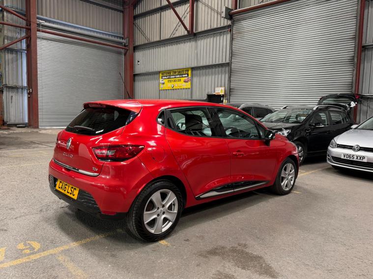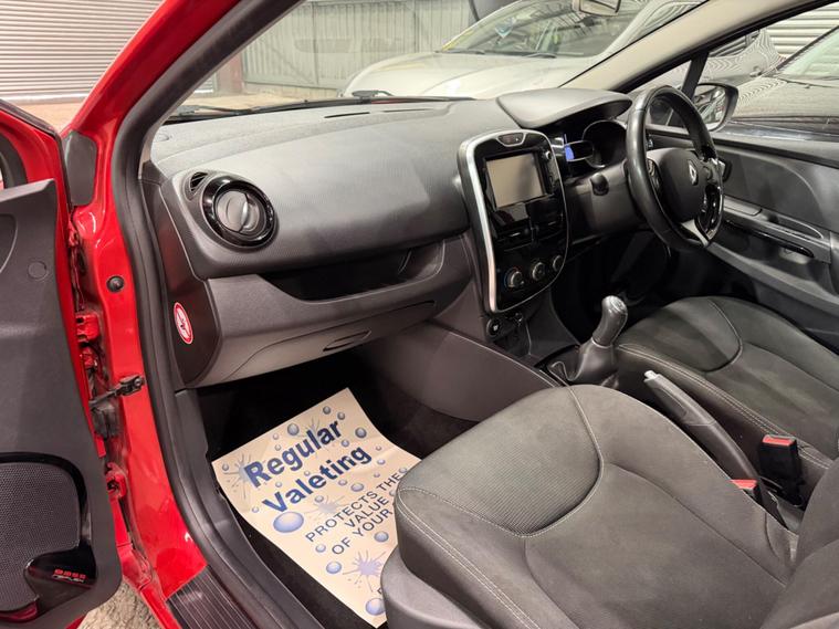 We are delighted to offer for sale this 2016 (16) Renault Clio 0.9TCe Dynamique Nav Euro 6 in gleaming Metallic Red. In excellent condition throughout, this affordable 5 door hatchback is very economical (up to 61 mpg). It is spacious and comfortably seats 5 people and also has a good sized boot. The rear seats split/fold to further increase load space. With the below average mileage of 56, 649 there is still plenty of life left in this well maintained car. HISTORY: The vehicle has had 3 careful owners and has a full service history (x 8 service stamps) as well as a clean vehicle history check. It has just ben serviced as part of our vehicle prep and will come with a MOT expiring on 25/01/2027. SPEC: This Renault Clio features a 0.9L petrol engine. Entry is keyless (key card) with a push button start. The grey/black cloth upholstery and leather trimmed multifunction steering wheel add a touch of quality while MediaNav multimedia integrates the multifunction colour touchscreen with mobile devices for Bluetooth connectivity/handsfree calls. Further specification includes a remote alarm/immobiliser, Ecomode, electronic stability control, emergency brake assist, hill start assist, front fog lights, LED daylight running lights, auto Halogen double optic headlights, auto wipers, SatNav, DAB radio, USB/Aux input, AirCon, tyre pressure monitoring system, gearshift indicator, cruise control/speed limiter, drivers seat height adjustment, electric windows and electric heated mirrors. Isofix points allow child seats to be fitted and there is also a tyre inflation kit. The 16 inch alloys are in excellent condition and compliment the Metallic Red paintwork and privacy glass.OUR PREP: For your peace of mind, this vehicle has been independently inspected, professionally valeted, serviced and MOT'd and comes with a 3 month/2500 mile warranty included in the advertised price. Extended warranties are also available. We offer free delivery within a 30 mile radius but nationwide delivery can also be arranged. Part exchange is welcome.VIEWING IS STRICTLY BY APPOINTMENT ONLY..