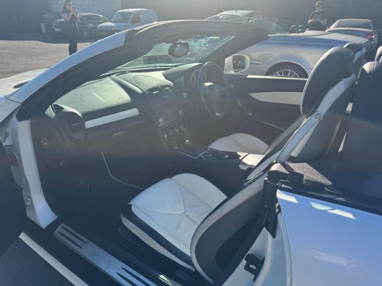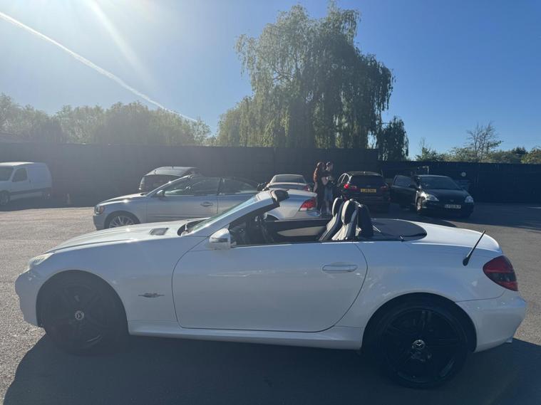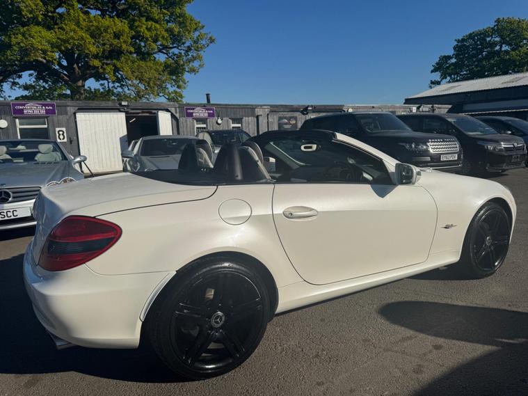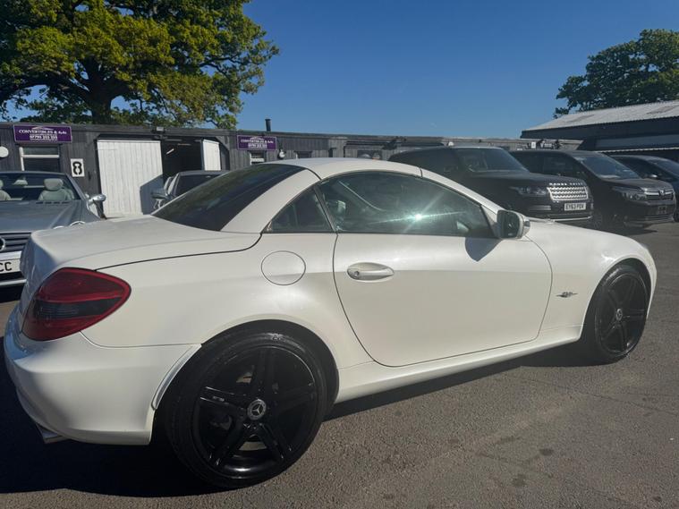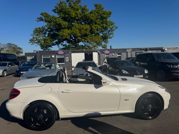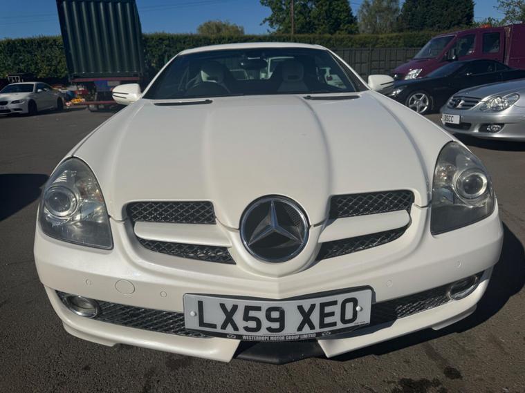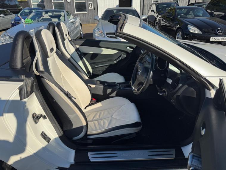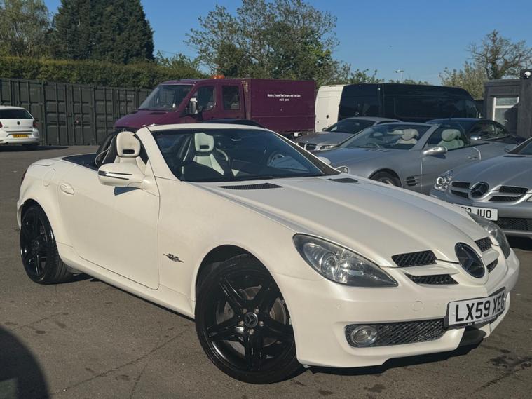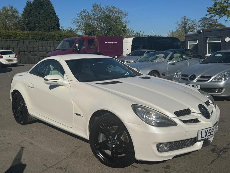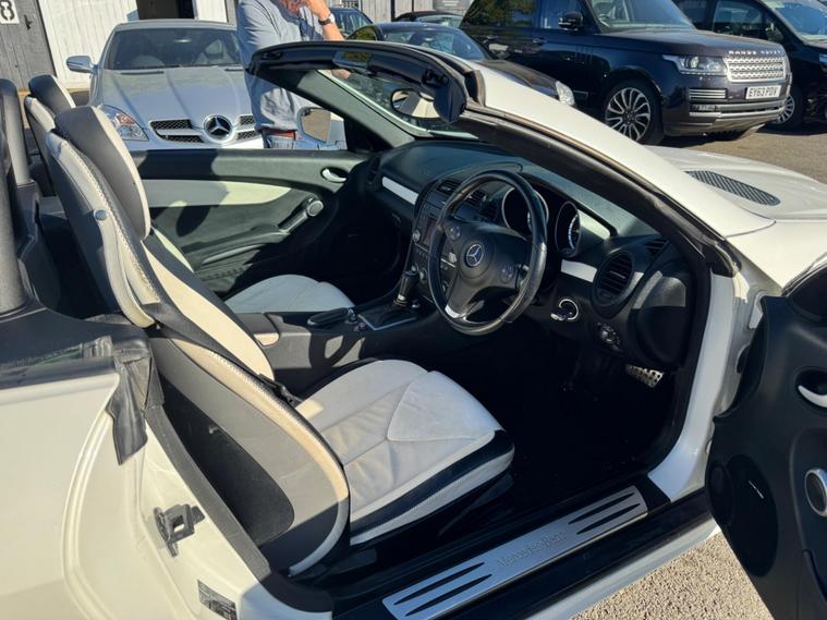 PLEASE NOTE A BETTER SET OF 40 PHOTOS SHORTLY AND THE WHEEPS ARE TO BE REFURBISHES IN SILVER OR BLACK. THIS Mercedes-Benz SLK 1.8 SLK 200K 2 LOOK AUTOMATIC Euro 4 2dr VERY LTD EDITION POWER ROOF CONVERTIBLE LOOKS AMAZING IN THE SUPERB COLOUR COMBINATION MYSTIC WHITE PEARL CONTRASTING WHITE LEATHER HEATED SEATS WITH AIR SCARF, INTERIOR AND ALUMINIUM TRIM TO THE DASH AND DOOR CARDS YES VERY SMART. THE LAST OWNER HAS LOVED AND CHERISHED THE CABRIOLET FOR YEARS. THERE IS GOOD SERVICE HISTORY 12 OF AND WE WILL SERVICE IT AS SOON AS IT ARRIVE. THE ROADSTER HAS A POWER CONVERTIBLE ROOF, TELEPHONE BLUETOOTH TELEPHONE CONNECTION, FACTORY COMAND SAT NAV DUAL ZONE CLIMATE CONTROL AIR CONDITIONING , ELECTRIC WINDOWS. STEREO RADIO/CD-PLAYER, REMOTE CONTROL CENTRAL LOCKING SYSTEM, 17 INCH ALLOY WHEELS WITH GOOD TYRES. THERE ONLY 1 KEY & ALL THE BOOKS AND MANUALS This 2009 Mercedes Benz SLK200K 2LOOK offers peace of mind with a clear vehicle history check. This stylish convertible features a 1.8 litre petrol engine and is presented in the desirable 2LOOK trim. The SLK200K 2LOOK is a refined choice for those seeking a premium driving experience. Its robust engineering and the Mercedes Benz reputation for quality ensure it stands out from other vehicles in its class. This particular model is well presented and ready for its next owner to enjoy..