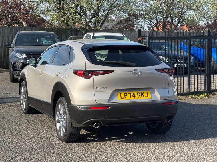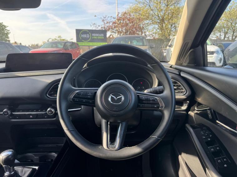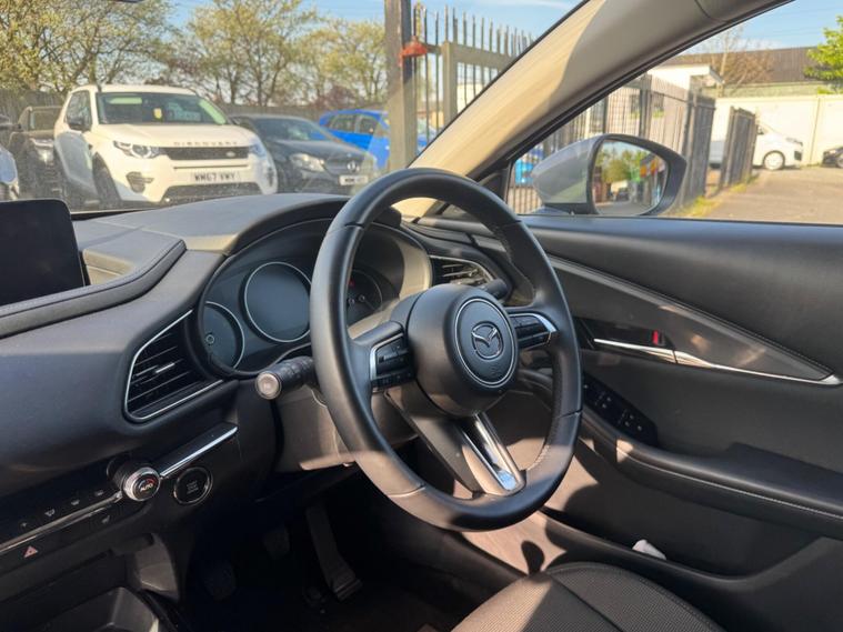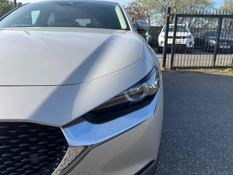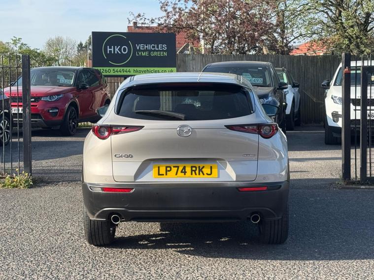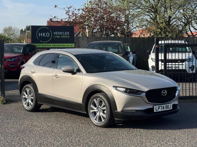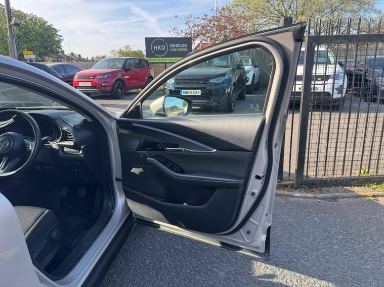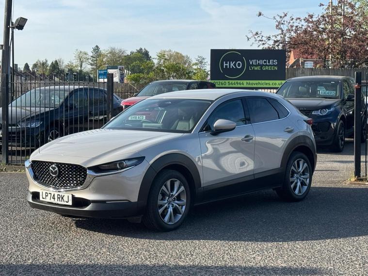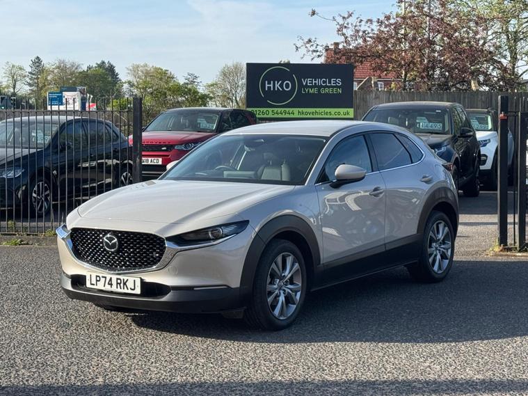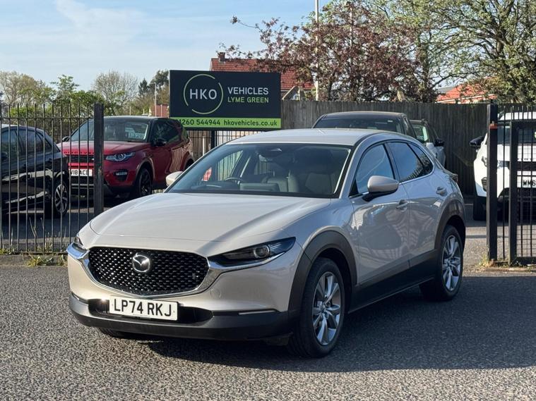 Welcome to HKO Vehicles Lyme Green – we are delighted to offer this stunning 2025 Mazda CX-30 2.5 e-SKYACTIV G MHEV Exclusive-Line, finished in sleek silver and presented in excellent condition throughout. This is a modern, premium SUV that combines stylish design, advanced technology, and efficient mild-hybrid performance.This vehicle has covered just 21, 000 miles and is a one-owner example, clearly reflecting careful ownership. Powered by the refined 2.5 e-SKYACTIV G petrol engine with mild hybrid technology, producing 140ps, paired with a manual gearbox, it delivers a smooth, responsive drive with improved efficiency and lower emissions. Being Euro 6 compliant, it meets the latest emission standards.As the high-spec Exclusive-Line model, this CX-30 comes with an excellent level of factory equipment, including:* Full premium interior with high-quality finish* Heated front seats* Satellite navigation system* Large infotainment display with rotary controller* Apple CarPlay and Android Auto* Reversing camera* Front and rear parking sensors* Dual zone climate control* Adaptive cruise control* Lane assist and driver safety systems* LED headlights with signature daytime running lights* Keyless entry and push button start* Alloy wheelsThe CX-30 is known for its premium build quality, comfortable ride, and refined driving experience, making it a fantastic choice for both city and long-distance driving.This vehicle will be supplied with a 12 Months MOT and includes a 3 Months Warranty for added peace of mind.We are proud to be an AA Approved Dealer, ensuring all vehicles are thoroughly inspected and prepared to the highest standard prior to sale.Finance available – instant decision, competitive rates, and drive away today. Please apply via our website or call us on (01260) 544944 to discuss a tailored finance package.A fantastic opportunity to own a nearly new, one-owner Mazda CX-30 Exclusive-Line, offering modern technology, efficiency, and premium comfort. Contact HKO Vehicles Lyme Green today to arrange a viewing or test drive..