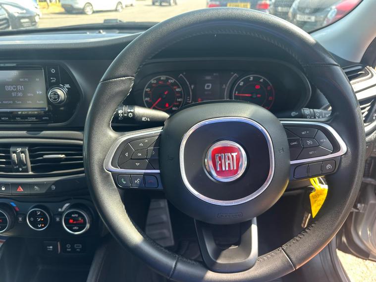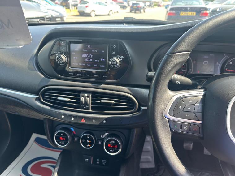STUNNING EXAMPLE THAT REALLY MUST BE VIEWED , DRIVES PERFECT WITH A FULL HISTORY . This 2017 Fiat Tipo Lounge is a superb example, having had only two owners from new. It boasts a 1.6 litre Euro 6 diesel engine, offering an impressive fuel economy of up to 76 miles per gallon. The Lounge trim level comes equipped with a Visibility Pack, including automatic headlights, and a rear view camera with parking assistance. Inside, you'll find automatic climate control for your comfort, and the VP2 navigation system with a 5 inch touchscreen, featuring AUX, USB, DAB radio, and Bluetooth connectivity. For added convenience, rear parking sensors are also included.This Fiat Tipo Lounge stands out with its low CO2 emissions and a low insurance group, making it an economical choice. Its generous boot space is perfect for families or those who need extra room for luggage or shopping. These highlights demonstrate how this particular vehicle offers excellent value and efficiency compared to other cars in its class..