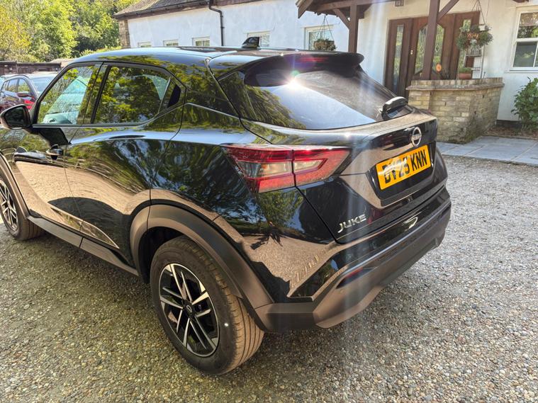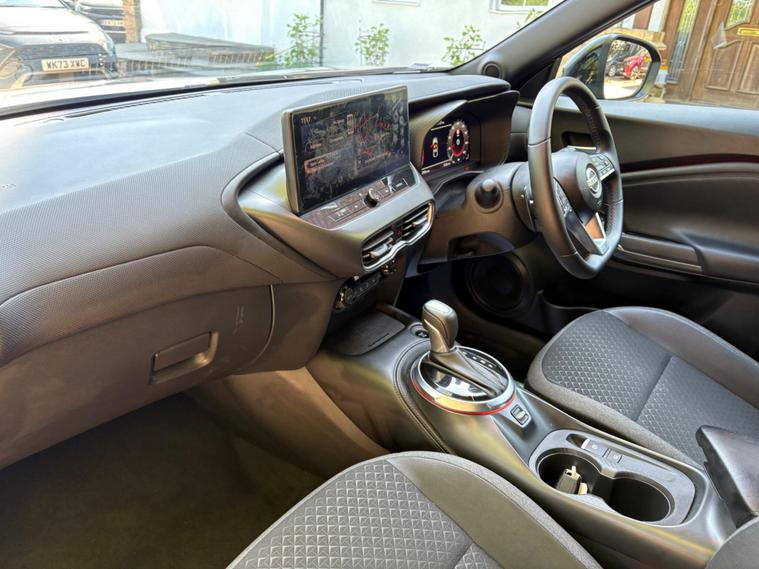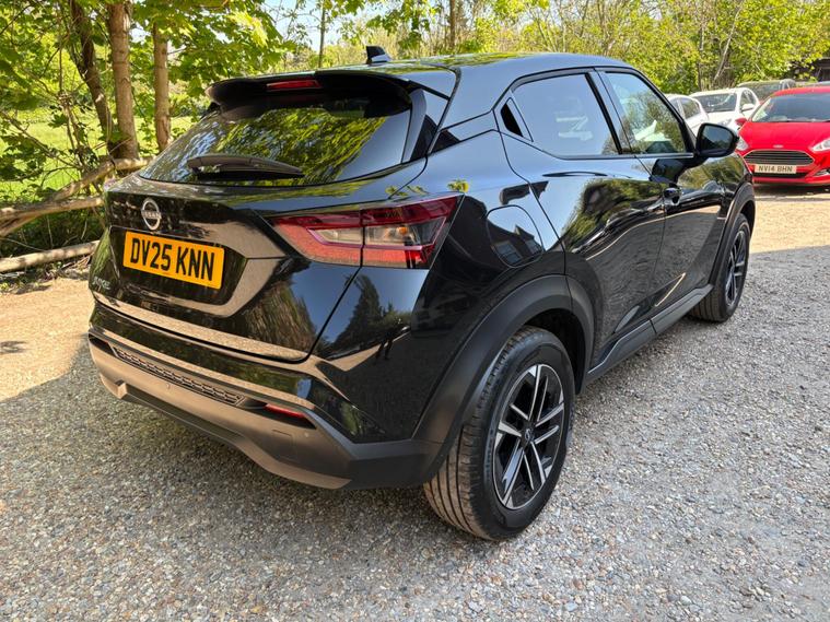 This 2025 Nissan Juke DIG T N Connecta is a superb example, having had only one owner from new. This stylish hatchback is powered by an efficient 1.0 litre petrol engine, meeting Euro 6 emission standards. It comes equipped with modern conveniences such as LED headlights for enhanced visibility, and automatic climate control to ensure a comfortable cabin temperature. Stay connected on the go with Bluetooth connectivity, complemented by both USB A and C ports, and keep your devices topped up with the integrated wireless phone charger. Navigating tight spaces is made easier with front parking sensors.The Juke DIG T N Connecta offers impressive efficiency, boasting a fuel economy of 47 miles per gallon, which is a strong indicator of its cost effectiveness compared to similar vehicles. Furthermore, its low CO2 emissions contribute to a more environmentally conscious driving experience. This well maintained, single owner vehicle presents a compelling choice for those seeking a blend of practicality, technology, and economy in a compact car..