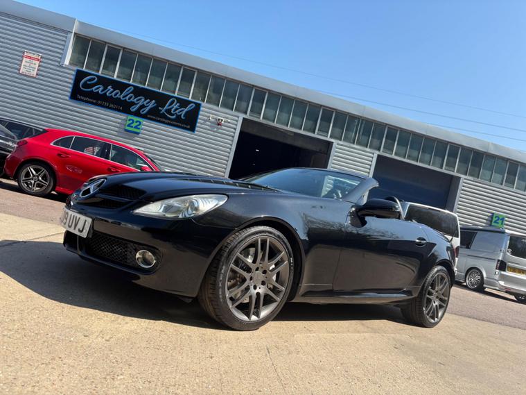 VERY CLEAN LOW MILEAGE MERCEDES BENZ SLK200 KOMPRESSOR AUTO - FULL SERVICE HISTORY - HPI CLEAR - BRAND NEW APRIL 2027 MOT - JUST SERVICED - GORGEOUS LOOKING CAR IN EXCELLENT CONDITION - 3 MONTHS NATIONWIDE WARRANTY INCLUDED - LOOKS & DRIVES SUPERB +++ Carology LTD are pleased to offer this beautiful low mileage Mercedes Benz SLK200 Kompressor finished in obsidian black metallic. It comes with a full service history consisting of 13 stamps in the book and it also has a brand new 12 month MOT until April 2027. We have just carried out an annual service as part of our own preparation which included replacing the the engine oil and oil filter, fitting a new air filter as well as new front and rear brake discs and pads so its ready to drive away. Overall this is a lovely example is in excellent condition, the bodywork is very good, the interior still looks bright and clean plus we have just refurbished the alloy wheels in storm grey pearl which has really finished her off. This is really clean example, drives really well and offers excellent value and performance. +++ FULL VOSA HISTORY REPORT TO VERIFY MILEAGE, HPI CLEAR, AA APPROVED DEALER, NATIONWIDE DELIVERY AVAILABLE, 3 MONTH COMPREHENSIVE WARRANTY INCLUDED - UP TO 24 MONTHS NATIONWIDE WARRANTY AVAILABLE AT COMPETITIVE PRICES - DEBIT & CREDIT CARDS ACCEPTED, PART EXCHANGE WELCOME, 2 KEYS, 12 MONTHS AA BREAKDOWN COVER, ZUTO CAR FINANCE APPROVED DEALER. +++ We are a Saab and Mitsubishi specialist based in Peterborough, Cambridgeshire. We have a fully qualified Saab Master Technician and full Tech 2 Saab and MUT Diagnostic facilities. For further information or to make an appointment to view this car please call us on 01733604498 or you can email us via autotrader or our website anytime. Video walk rounds available immediately via WhatsApp. Viewing by appointment..