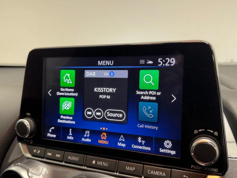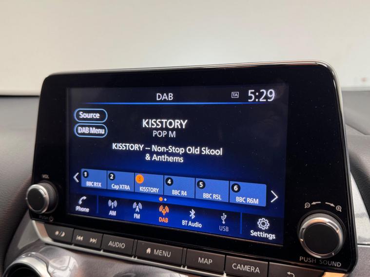 This 2022 Nissan Juke Tekna is a superb example, having had only one owner since new. It features a 1.6 litre petrol hybrid engine, meeting Euro 6 emissions standards. Inside, you'll find the impressive Bose Personal Plus Audio System, offering a premium branded sound experience. Convenience is key with the Intelligent Key and Start Push Button, complete with walk away lock and approach unlock functions for seamless keyless entry. The ProPilot Pack enhances your driving with Blind Spot Assistance, Adaptive Cruise Control, and a 360 degree camera system, further supported by front and rear parking sensors for effortless manoeuvring.This Juke Tekna stands out with its exceptional fuel economy, achieving an impressive 55 miles per gallon, which indicates it is more economical than many similar vehicles. Furthermore, its low CO2 emissions and low insurance group highlight its cost effectiveness for everyday use, making it a smart choice for discerning drivers..