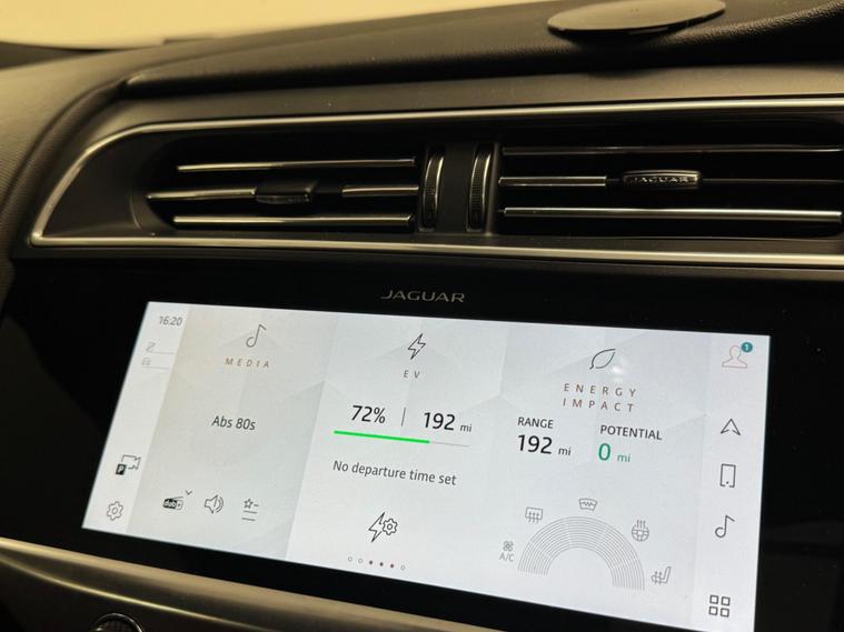 This 2022 Jaguar I-PACE 400 HSE Black offers an exceptional electric driving experience with its Four Wheel Drive system and a substantial 90 kWh battery. As an electric vehicle, it provides a smooth and quiet ride, complemented by a maximum range of 277 miles when new. Charging is convenient, with a full charge taking approximately 12 hours and 36 minutes from a home 7kW charger, and a rapid 50 minutes to reach 80% charge at a public charging station. Inside, you'll find luxurious comfort with 16-way heated and cooled electric front seats featuring memory settings for both driver and passenger, alongside 40-20-40 folding heated rear seats. The HSE Black trim also includes advanced Matrix LED Headlights with Signature Daytime Running Lights and a premium Meridian 3D Surround Sound System for an immersive audio experience. Parking is made easier with a rear camera, and the generous boot space ensures practicality for all your needs.The Jaguar I-PACE 400 HSE Black stands out with its impressive performance, accelerating from 0-60mph in a swift 4.5 seconds, demonstrating its dynamic capabilities. This acceleration figure highlights its superior performance compared to many other vehicles in its class. The 277 mile maximum range further enhances its appeal, offering considerable freedom for both daily commutes and longer journeys, indicating a strong advantage over electric vehicles with shorter ranges. These key attributes, combined with its advanced technology and luxurious appointments, make this 2022 I-PACE a compelling choice for those seeking a premium electric SUV..