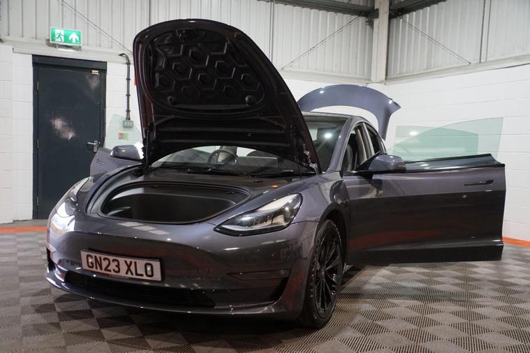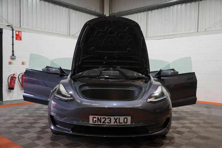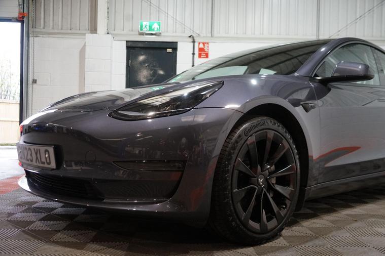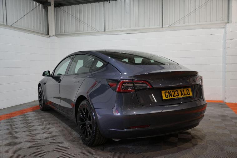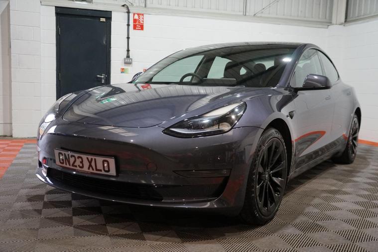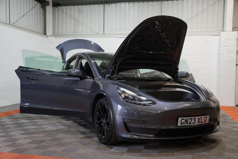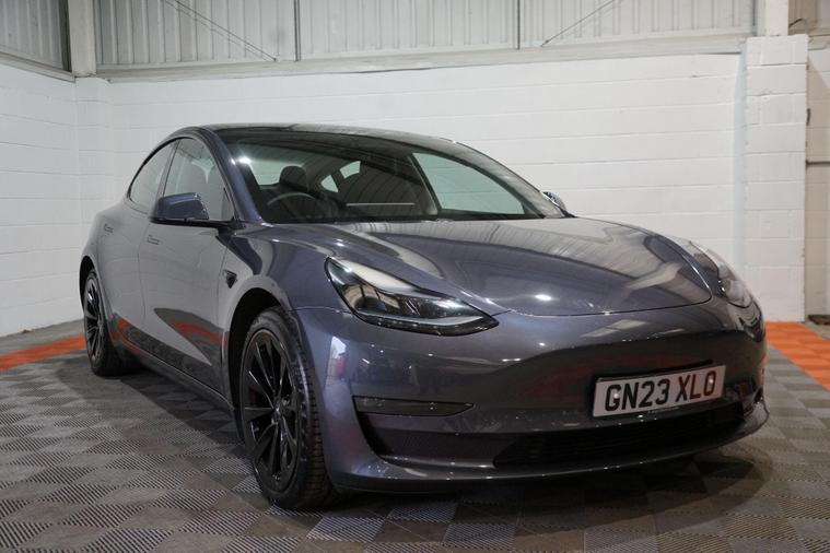 Tesla Model 3 (Dual Motor) Long Range Auto 4WDE 4dr delivers exceptional all-electric performance with dual motor all-wheel drive, providing rapid acceleration, outstanding grip and impressive long-range capability. Smooth, quiet and highly responsive, it is perfectly suited to both daily commuting and longer motorway journeys with confidence.Finished in stealth grey, this example presents a subtle yet striking appearance that enhances the Model 3’s sleek, aerodynamic lines while maintaining a modern and understated road presence.* Dual motor all-wheel drive system for enhanced traction and performance* Long Range battery offering extended driving capability between charges* Fully electric powertrain delivering instant acceleration and zero emissions driving* Heated front and rear seats for year-round comfort* Heated steering wheel for added convenience in colder conditions* Google Maps navigation providing real-time routing and traffic updates* Front and rear cross traffic cameras for improved visibility and safer manoeuvring* Reversing camera for easy parking* Bluetooth connectivity for hands-free calls and media streaming* DAB digital radio with a wide range of stations* Remote central locking for convenience and security* Remote control via smartphone app, allowing access to key vehicle functionsA high-performance electric saloon that combines cutting-edge technology with everyday usability, ideal for drivers seeking efficiency, comfort and advanced features in one refined package.All vehicles come with 6 months warranty and a fresh 12-month MOT.All part exchange welcome, with fair and instant valuations offered.Distance purchase? No problem. We can provide a detailed walk-around video and offer competitive home delivery options..