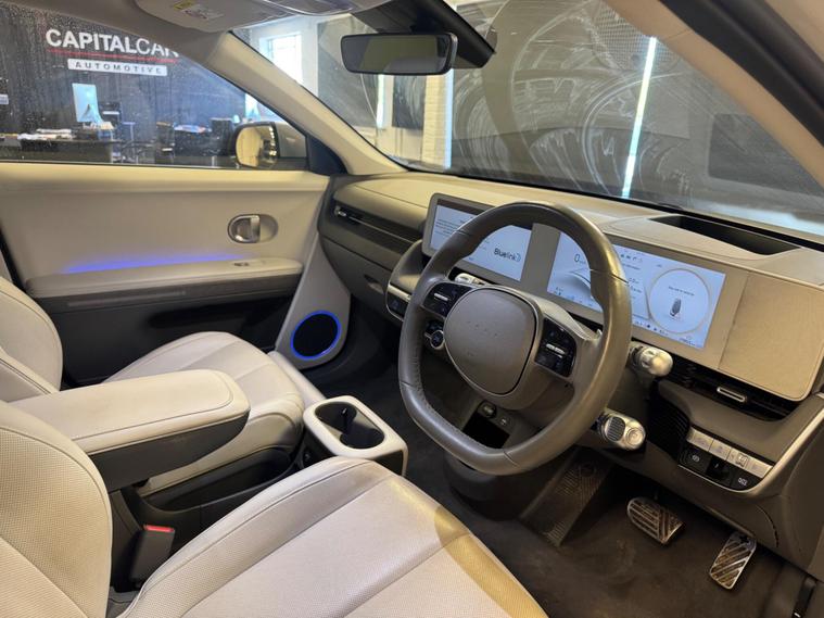 This 2022 Hyundai IONIQ 5 Ultimate is a standout example, boasting exceptionally low mileage for its age, having covered just 18, 000 miles with only one owner from new. This electric vehicle features a 58 kWh battery, offering a maximum range of 238 miles when new. Its vehicle history is clear, providing peace of mind. Notable features include stylish 19in alloy wheels, a rear view monitor with dynamic parking guidance, and a heated steering wheel for added comfort. You'll also appreciate the convenience of smart keyless entry with an engine start-stop button and Bluetooth connectivity with voice recognition.The IONIQ 5 Ultimate excels in practicality and convenience. Charging is efficient, with a full charge at home on a 7kW charger taking approximately 8 hours and 11 minutes, and a rapid charge from empty to 80% achievable in just 17 minutes at a public charging station. This indicates a superior charging experience compared to many other electric vehicles. Furthermore, the generous boot space ensures you have ample room for luggage or shopping, making it a versatile choice for everyday use and longer journeys..