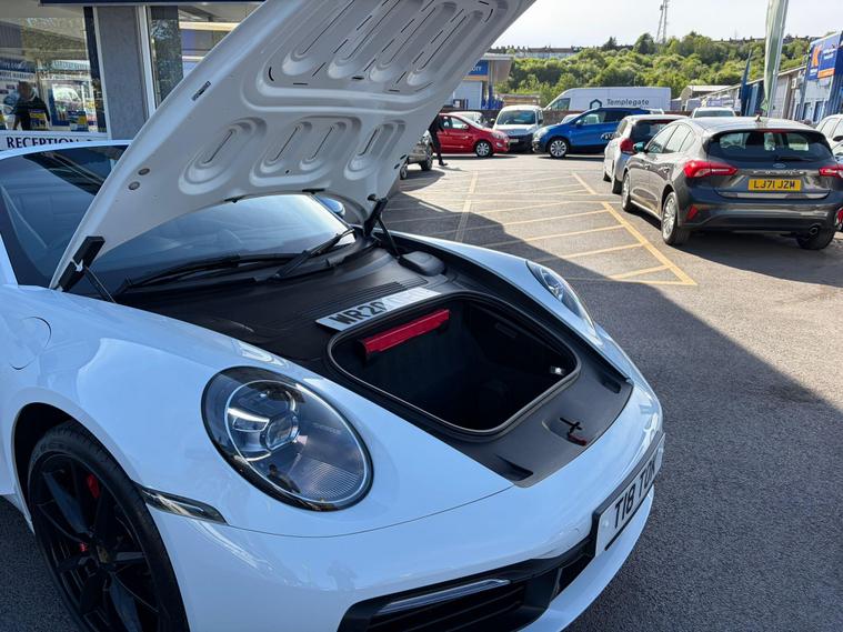 This 2020 Porsche 911 T 992 Carrera S is a remarkable example of German engineering, presented in excellent condition. Powered by a potent 3.0L petrol engine, this Euro 6 compliant model offers exhilarating performance. It comes equipped with a suite of advanced features designed for comfort and convenience, including Two Zone Automatic Climate Control, Connect Plus with Apple CarPlay integration, and ParkAssist for both front and rear, complemented by a reversing camera. The vehicle also benefits from Automatic Headlight Activation with Welcome Home Lighting and striking LED Main Headlights featuring distinctive 4 point LED Daytime Running Lights.The performance of this Porsche 911 T 992 Carrera S is truly exceptional, with an impressive 0-62mph acceleration time of just 3.9 seconds. This rapid acceleration demonstrates its superior engineering and dynamic capabilities when compared to other vehicles in its class. The combination of its powerful engine, precise handling, and sophisticated technology makes this 911 a truly engaging driving experience..