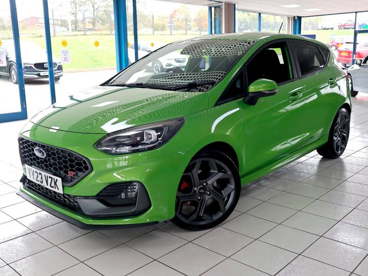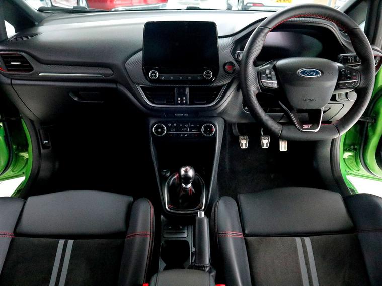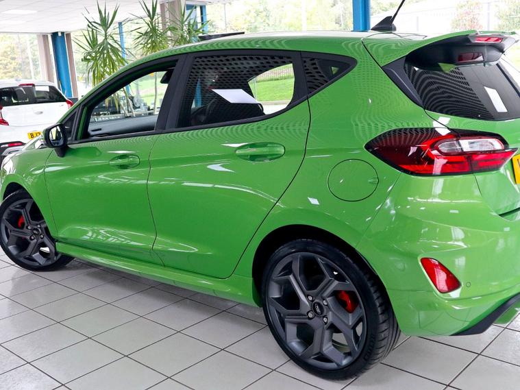 A thrilling blend of hot-hatch performance and everyday usability, this Fiesta ST-3 delivers an engaging drive without sacrificing comfort. Powered by the punchy 1.5 EcoBoost producing around 197 bhp, it sprints with true enthusiasm - the kind of brisk acceleration that turns routine commutes into enjoyable drives, helped along by a slick 6-speed gearbox and sharp chassis tuning that reward confident steering inputs. The interior balances sportiness and refinement: Ford Performance partial Sensico seats with red stitching provide support on spirited runs while the half-leather trim and climate control keep longer journeys pleasant. Connectivity is modern and effortless thanks to SYNC 3 with built-in navigation plus Apple CarPlay and Android Auto, so music, maps and messages integrate cleanly. Practical touches included in the winter pack, heated seats and heated front screen mean chilly mornings are no longer a bother, and parking is easier with the park camera and sensors. The exterior stands out too in the exclusive Mean Green Metallic finish, a factory-added option that gives this example a distinctive presence. With combined economy around 40 mpg and sensible emissions for its class, it remains economical for daily use while still offering genuine hot-hatch thrills. Single-keeper history and thoughtful specification upgrades make this car an appealing choice for anyone wanting a compact, characterful performance hatch that still covers the practical bases for everyday life. LOOKING FOR SOMETHING SIMILAR? We have another 335 vehicles available on our website! Please contact us for more details.