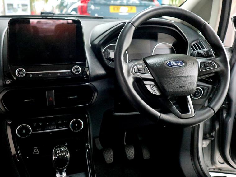 Combining compact agility with SUV practicality, this EcoSport delivers a confident and comfortable drive whether you're navigating busy streets or heading out for a weekend escape. Powered by a punchy 1.0 EcoBoost engine offering around 123 bhp and paired with a smooth 6-speed gearbox, it manages an impressive balance of performance and efficiency-returning roughly 47.1 mpg and 137 g/km CO2-so you won't compromise economy for fun. Inside, the cabin feels well-appointed and refined thanks to leather seating, climate control and a heated front screen that makes colder mornings much easier. The modern infotainment suite keeps you connected with Apple CarPlay, Android Auto, satellite navigation and Bluetooth, while the Park Cam and parking sensors take the stress out of tight parking spots. Practical touches like electric windows and mirrors, cruise control for relaxed motorway miles, and traction control for extra reassurance in mixed conditions add to the all-round appeal. The alloy wheels give a finished, sporty look and the low current-keeper count suggests it's been looked after. This vehicle works well for families, commuters and anyone seeking a compact SUV that doesn't skimp on creature comforts or technology. It blends useful everyday features with a tidy, engaging drive and modern connectivity-making it an appealing choice if you want a small SUV with big personality and sensible running costs. LOOKING FOR SOMETHING SIMILAR? We have another 327 vehicles available on our website! Please contact us for more details.