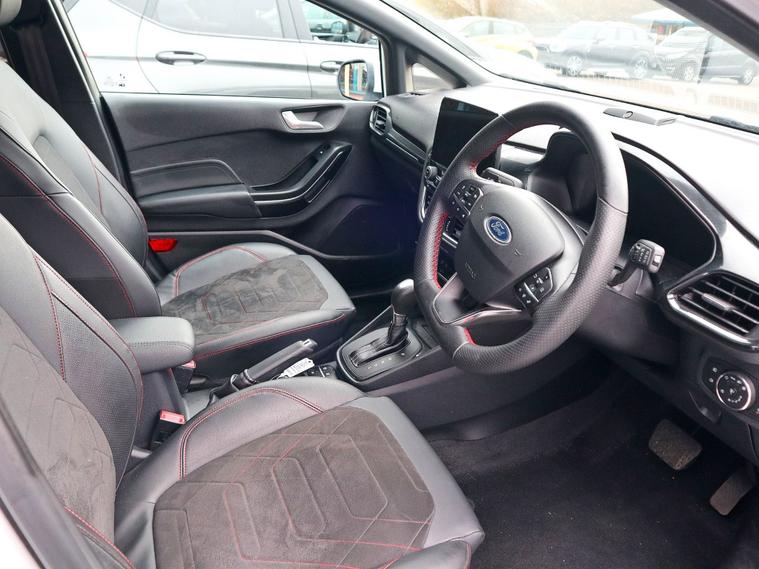 Sporty styling meets smart economy in this Fiesta ST-Line X Edition, a sharpened small car that balances everyday practicality with engaging performance. The mild-hybrid EcoBoost powertrain delivers a responsive 123 bhp and strong real-world efficiency - around 50.4 mpg combined and CO2 of 126 g/km - so you get lively acceleration without high running costs. Inside, the cabin blends comfort and tech with half-leather trimmed seats that are heated for chilly mornings, a heated front screen for de-icing, and dual-zone climate control to keep everyone comfortable. Connectivity is effortless via Apple CarPlay, Android Auto, and built-in satellite navigation, while Bluetooth and cruise control make longer journeys relaxed and convenient. Manoeuvres are made simple by the parking sensors and rear park cam, and the ST-Line's alloy wheels and purposeful styling give this car a confident, modern presence on the road. Practical touches like electric windows, electric mirrors and central locking add everyday ease, and traction control helps keep things composed in mixed conditions. With only one current keeper, this example has been clearly well maintained and presents as a reliable, economical companion that's equally at home on the commute or a weekend escape. If you want a compact car that feels premium in its details, fun to drive and kind to the pump, this Fiesta ST-Line X Edition offers an excellent blend of style, technology and efficiency. LOOKING FOR SOMETHING SIMILAR? We have another 336 vehicles available on our website! Please contact us for more details.