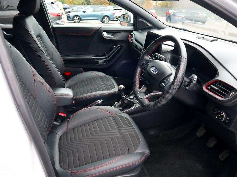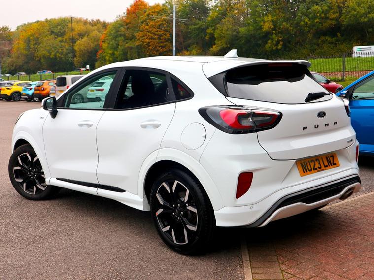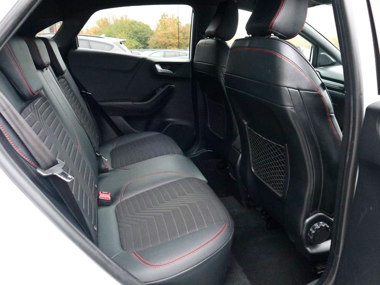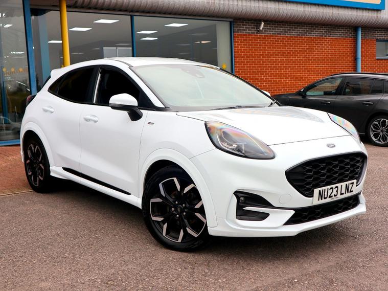 Sporty styling and smart efficiency meet in this Puma ST-Line X with mild-hybrid EcoBoost technology, delivering an engaging drive without compromising on everyday practicality. Driven by a lively 1.0-litre that produces around 153 bhp, this car feels brisk off the line with a 0-62 time around 8.9 seconds, yet returns nearly 50 mpg combined and emits just 125 g/km of CO2 - perfect for drivers who want performance and economy in one package. The interior pairs comfort with connectivity: half leather seats and climate control make longer journeys relaxing, while satellite navigation, Apple CarPlay, Android Auto and Bluetooth keep entertainment and directions effortless. The cabin is well equipped with conveniences such as heated front screen for frosty mornings, cruise control for steady motorway miles, electric windows and mirrors, and central locking for ease of use. Parking sensors, traction control and a responsive six-speed gearbox add confidence whether parking in tight spots or carving through country lanes, and the alloy wheels underline the car's dynamic attitude. With just one previous keeper, this vehicle has been well looked after and presents a compelling balance of style, technology and efficiency. If you are after a compact crossover that feels fun to drive yet sensible for daily life, this Puma variant combines comfort, advanced infotainment and economical performance in a desirable and highly versatile package. LOOKING FOR SOMETHING SIMILAR? We have another 323 vehicles available on our website! Please contact us for more details.