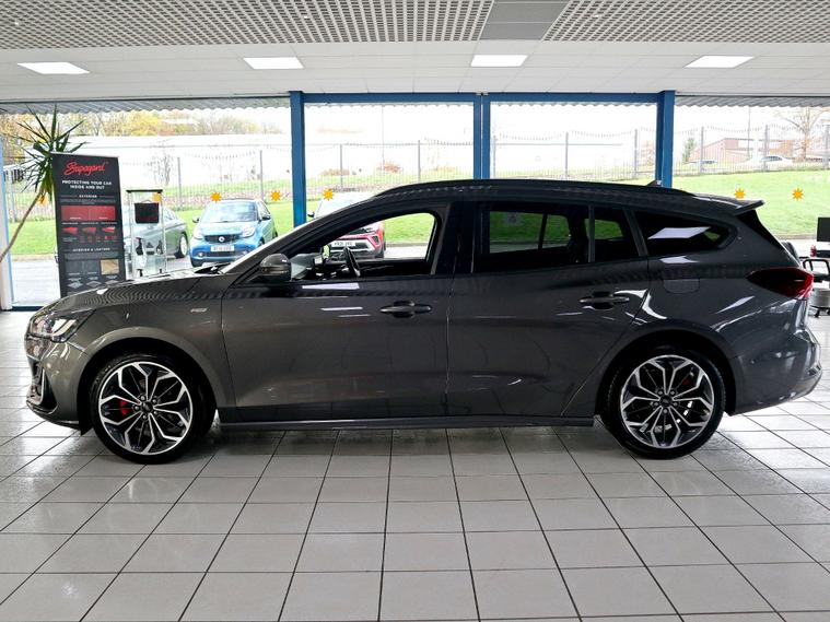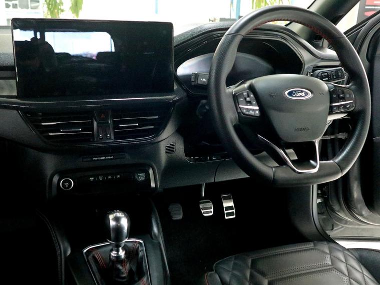 Stylish and surprisingly engaging to drive, this Focus combines sporty ST-Line cues with the upscale touches of Vignale trim to deliver a rare mix of performance, economy and comfort. The 1.0 EcoBoost MHEV powertrain serves up a lively 152.8 BHP while the mild-hybrid system smooths stop-start moments and helps achieve an impressive combined 51.4 mpg and 124 g/km CO2 - ideal for drivers who want brisk acceleration without compromising running costs. Inside, the cabin feels more premium than you might expect from a compact hatch: leather seating with heating keeps everyone comfortable on colder mornings, while climate control and a heated front screen add convenience. Tech is well covered with satellite navigation, Apple CarPlay and Android Auto for seamless smartphone integration, Bluetooth connectivity and a clear infotainment layout. Practicality hasn't been forgotten - six-speed gearing gives relaxed motorway cruising, parking sensors make tight spaces easy, and electric mirrors and windows plus central locking add everyday ease. Alloy wheels and traction control complement the sporty handling, and cruise control keeps long journeys effortless. With just one previous keeper, the car presents as a cared-for example that balances style and substance. If you're after a compact that looks smarter than its segment, is fun to drive, economical to run and loaded with family-friendly tech, this model ticks a wide range of boxes without feeling overblown. LOOKING FOR SOMETHING SIMILAR? We have another 332 vehicles available on our website! Please contact us for more details.