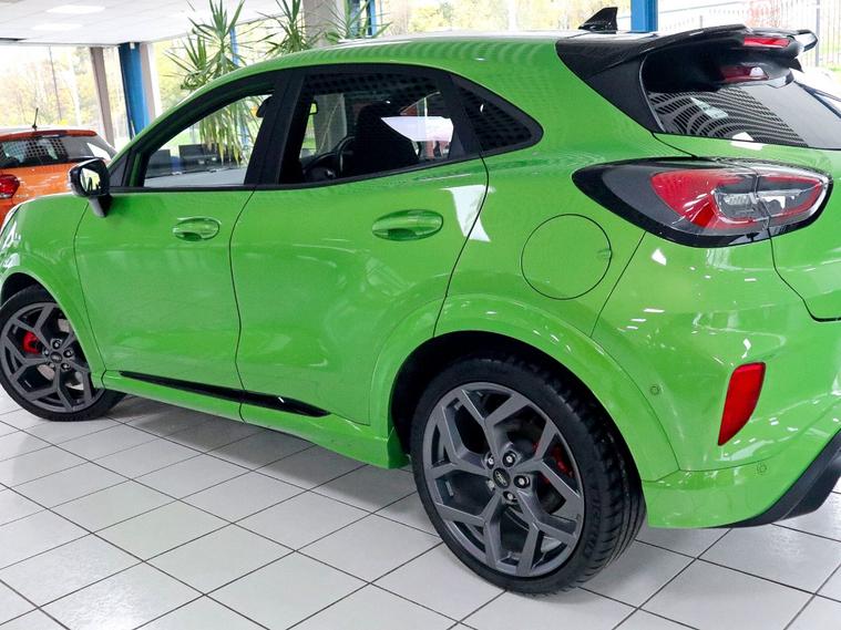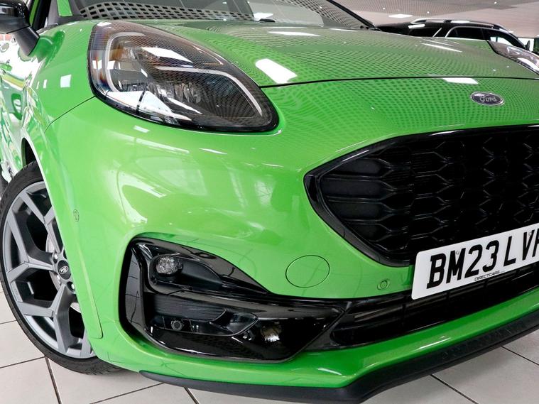 Sporty, practical and brimming with modern tech, this Puma ST EcoBoost strikes a great balance between everyday usability and genuine driving enjoyment. Powered by a punchy 1.5 turbo engine producing around 197 bhp and mated to a crisp 6-speed gearbox, the car feels lively on fast A-roads while still returning sensible combined economy of 41.5 mpg and CO2 emissions of 152 g/km. Inside, the cabin wraps occupants in comfort with half-leather heated seats, climate control and a heated front screen for chilly mornings, while the raised driving position gives a confident view of the road. Infotainment is up to date with satellite navigation, Apple CarPlay, Android Auto and Bluetooth so your phone integrates seamlessly; reversing is made easier with a park cam and parking sensors. Practical touches such as electric windows, electric mirrors, central locking and traction control add day-to-day convenience and peace of mind, and the alloy wheels underline the car's sporty stance. With only one previous keeper this example presents as a well-cared-for, compact crossover that's equally at home on motorways, suburban runs and weekend escapes. The blend of strong performance, modern connectivity and creature comforts makes this Puma an appealing choice for someone who wants a fun-to-drive car without compromising on practicality or specification. LOOKING FOR SOMETHING SIMILAR? We have another 332 vehicles available on our website! Please contact us for more details.