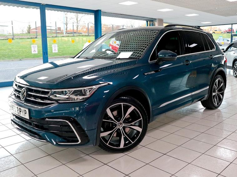 This Tiguan R-Line blends athletic styling with the kind of practicality that makes every journey easier. Finished in the striking Nightshade Blue metallic with Carbon Gray decorative inserts and Greyson sports cloth with 1/2 leather trim, it looks as purposeful as it feels. The sporty R-Line touches and alloy wheels give it presence on the road while the DSG gearbox and 4MOTION all-wheel drive deliver confident, composed performance - a 187 bhp power figure that balances keen acceleration with everyday usability. Inside, the cabin is designed for modern life: satellite navigation, Apple CarPlay and Android Auto keep your routes and apps instantly accessible, while Bluetooth connectivity, climate control and cruise control make longer trips comfortable and stress-free. Practical touches such as heated seats, parking sensors, electric windows and mirrors, central locking and traction control add convenience and reassurance in all conditions. With a combined fuel economy around 34 mpg and single ownership history, it's an appealing choice for someone seeking a well-specified, stylish compact SUV that doesn't compromise on capability. The mix of sporty fabric and leather, tasteful metallic paint and R-Line design cues creates an interior and exterior package that feels premium without being ostentatious. If you want a versatile family-friendly SUV that still rewards the driver with crisp handling and modern tech, this example represents a particularly attractive balance of form, function and specification. LOOKING FOR SOMETHING SIMILAR? We have another 326 vehicles available on our website! Please contact us for more details.