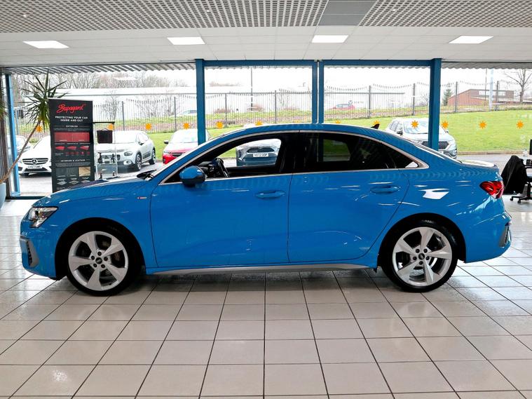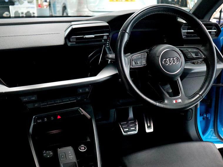 A stylish and sporty compact with premium detailing, this A3 S Line blends everyday practicality with a refined driving experience. Finished in striking Turbo Blue solid paint, the cabin introduces a sporty feel with twin black leather seats embossed with the S logo and tasteful dark spectrum aluminium inlays that lift the interior beyond the usual commuter hatch. The efficient 1.5 TFSI delivers around 148 bhp and enough poke to feel lively, reaching highway speeds in approximately 8.4 seconds, while returning a respectable combined 47.9 mpg and CO2 emissions of 134 g/km for balanced running costs. Practical technology is well covered: a built-in satellite navigation system, Apple CarPlay and Android Auto for seamless smartphone integration, Bluetooth connectivity and climate control make daily journeys straightforward and comfortable. The S tronic dual-clutch gearbox offers smooth, responsive shifts that suit both relaxed town driving and brisk motorway cruising, and features like cruise control and traction control add confidence in varying conditions. Outside, alloy wheels and S Line styling cues give a purposeful stance, while parking sensors, electric mirrors and windows, central locking and comprehensive safety equipment make life easier and more secure. With only two previous keepers, the car presents as a well-cared-for example that balances sporty looks with sensible running costs. For buyers seeking a compact premium hatch that feels more grown-up than its segment suggests, this vehicle provides an attractive blend of refinement, practicality and efficiency. LOOKING FOR SOMETHING SIMILAR? We have another 309 vehicles available on our website! Please contact us for more details.