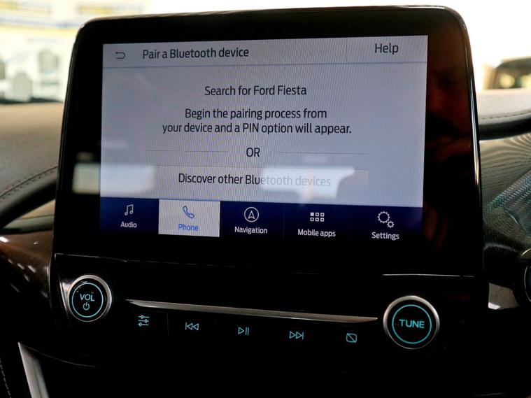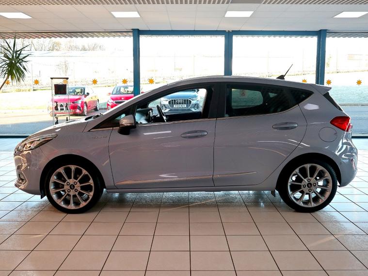 Finished in the striking Freedome Blue exclusive paint, this Vignale-trim Fiesta pairs premium looks with clever efficiency and a surprisingly sporty feel. The leather-trimmed interior surrounds occupants with heated seats, a heated front screen for frosty mornings, and full climate control to keep every journey comfortable. Tech features include satellite navigation, Apple CarPlay and Android Auto for effortless smartphone integration, Bluetooth connectivity and a park camera with parking sensors that make manoeuvres straightforward in tight spaces. Beneath the bonnet the mild-hybrid EcoBoost powertrain delivers 123 bhp with a smooth 6-speed gearbox, offering brisk acceleration (approximately 9.4 seconds to 62 mph) while returning around 55.4 mpg combined and CO2 emissions of 115 g/km - a great balance of punch and economy. The specification is rounded out with alloy wheels, traction control, cruise control, electric windows and mirrors, and central locking, giving a refinement beyond the typical small hatch. With just two previous keepers and that exclusive Freedome Blue finish (a factory option valued at lb400), this car stands out both visually and practically. Whether you're after a city-friendly commuter that's comfortable on longer journeys or a stylish small car with top-tier trim and modern connectivity, this vehicle offers a premium driving experience in a compact, efficient package. LOOKING FOR SOMETHING SIMILAR? We have another 315 vehicles available on our website! Please contact us for more details.